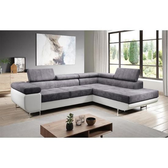 Nowoczesny narożnik Lotus stanowi niezwykłe połączenie elegancji, wygody i szerokiej funkcjonalności. Posiada dużą powierzchnię do siedzenia, jak również po rozłożeniu, do okazjonalnego spania - powierzchnia spania wynosi 125x193cm. Narożniki rozkładane to meble wypoczynkowe idealne dla rodzin, które cenią sobie wspólny wypoczynek na sofie. Kanapa narożna zapewni komfort podczas oglądania telewizji lub czytania książki. Odpowiedni rozmiar mebla wpasuje się w salon lub pokój dzienny. Narożnik rozkładany z funkcją spania powinien się znaleźć w każdym domu i z pewnością będzie służył długi czas. Dostępne opcje wyboru prawej lub lewej strony narożnika sprawiają, że możesz ustawić go w dogodnym miejscu.