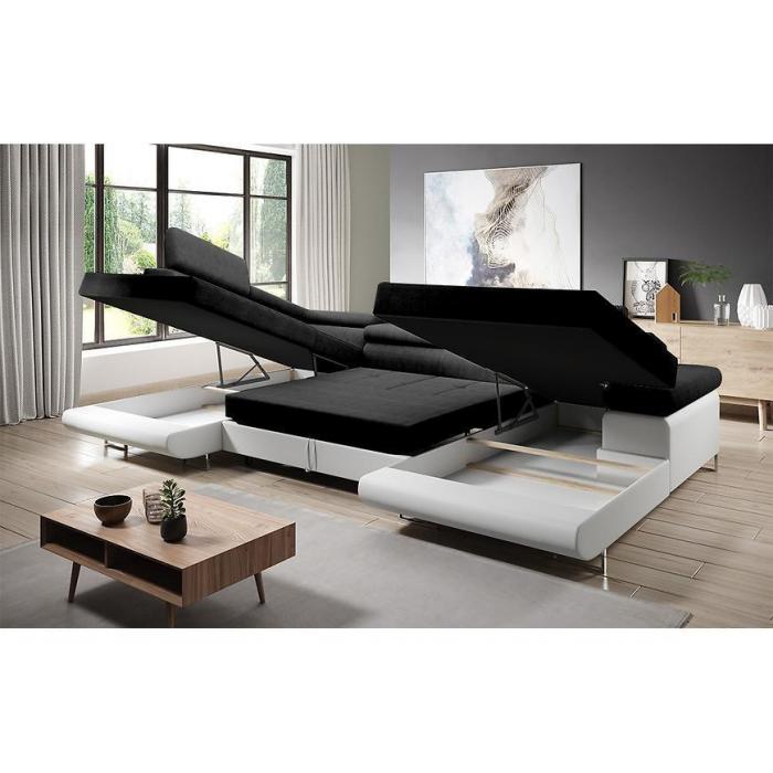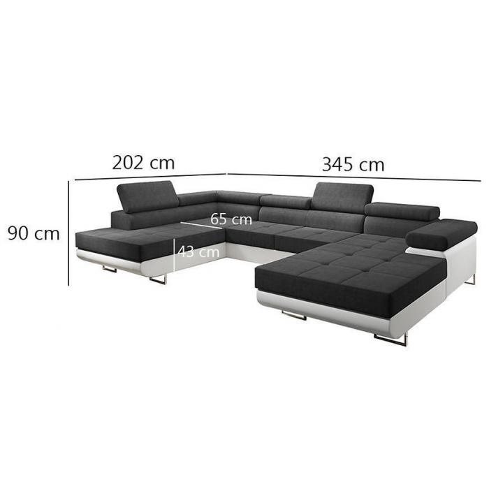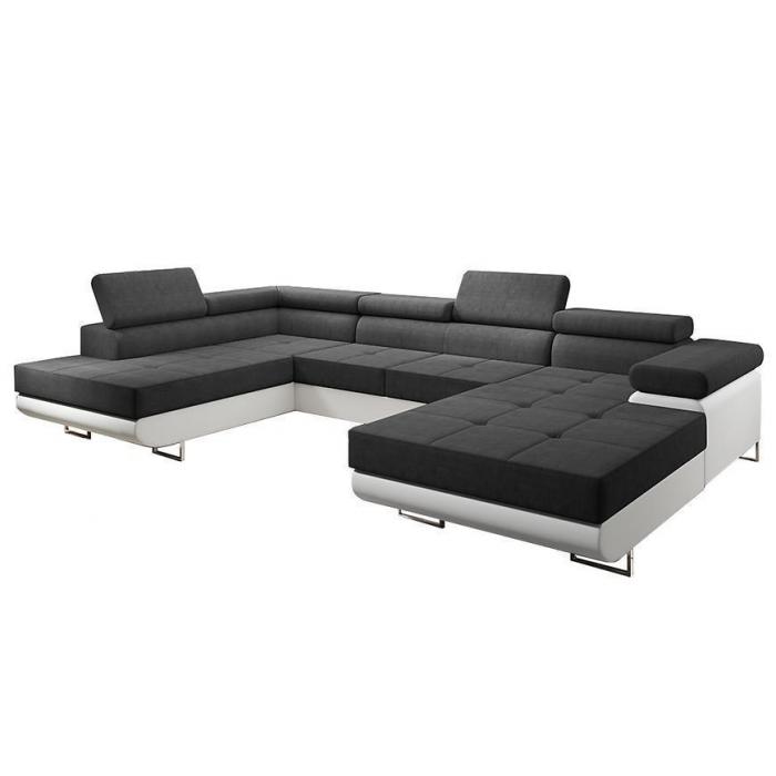 Sofa narożna posiada pojemnik na pościel, w którym zmieszczą się kołdry zachowując porządek w pomieszczeniu. Narożnik z funkcją spania okazjonalnego wyposażony w sprężyny faliste, wygodne oparcie oraz regulowany zagłówek zadowoli nawet najbardziej wymagających miłośników wielogodzinnych drzemek. Wysokość siedziska wynosi 43cm.