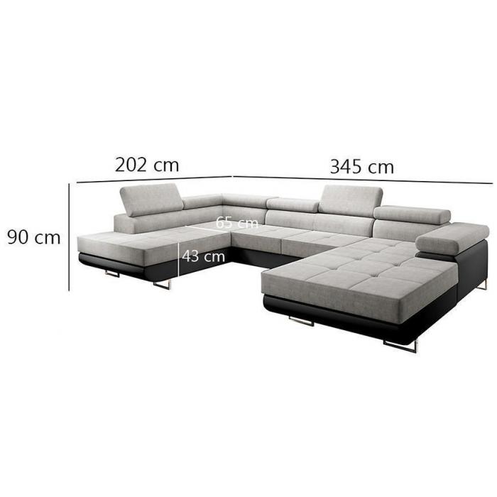 Sofa narożna posiada pojemnik na pościel, w którym zmieszczą się kołdry zachowując porządek w pomieszczeniu. Narożnik z funkcją spania okazjonalnego wyposażony w sprężyny faliste, wygodne oparcie oraz regulowany zagłówek zadowoli nawet najbardziej wymagających miłośników wielogodzinnych drzemek. Wysokość siedziska wynosi 43cm.