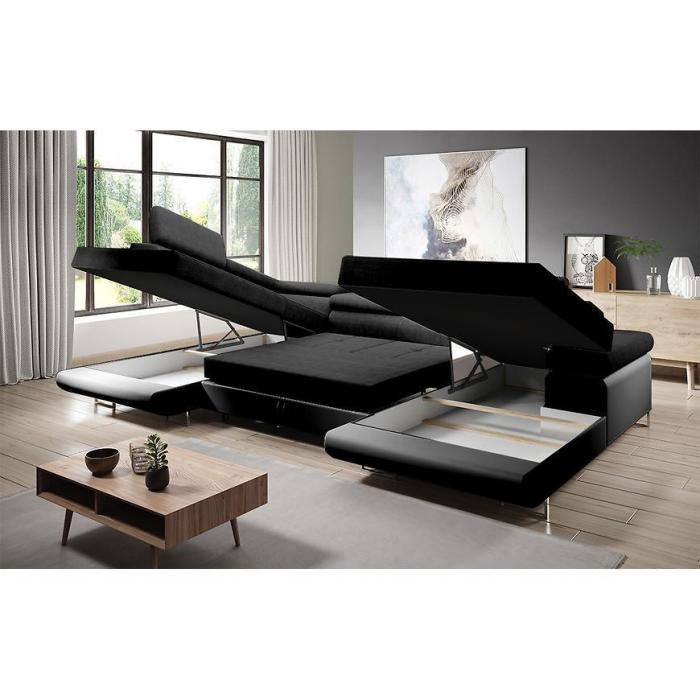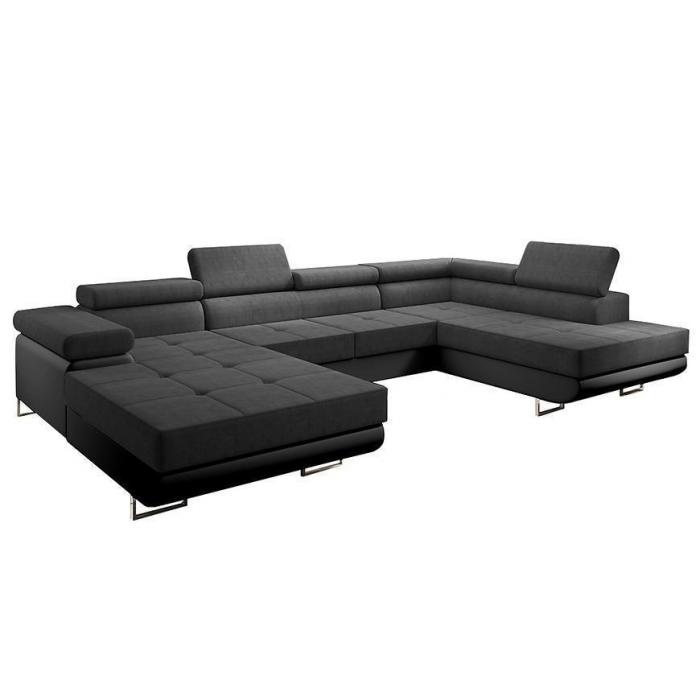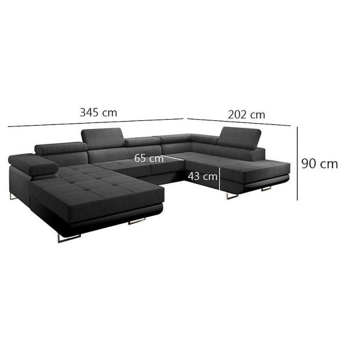 Sofa narożna posiada pojemnik na pościel, w którym zmieszczą się kołdry zachowując porządek w pomieszczeniu. Narożnik z funkcją spania okazjonalnego wyposażony w sprężyny faliste, wygodne oparcie oraz regulowany zagłówek zadowoli nawet najbardziej wymagających miłośników wielogodzinnych drzemek. Wysokość siedziska wynosi 43cm.