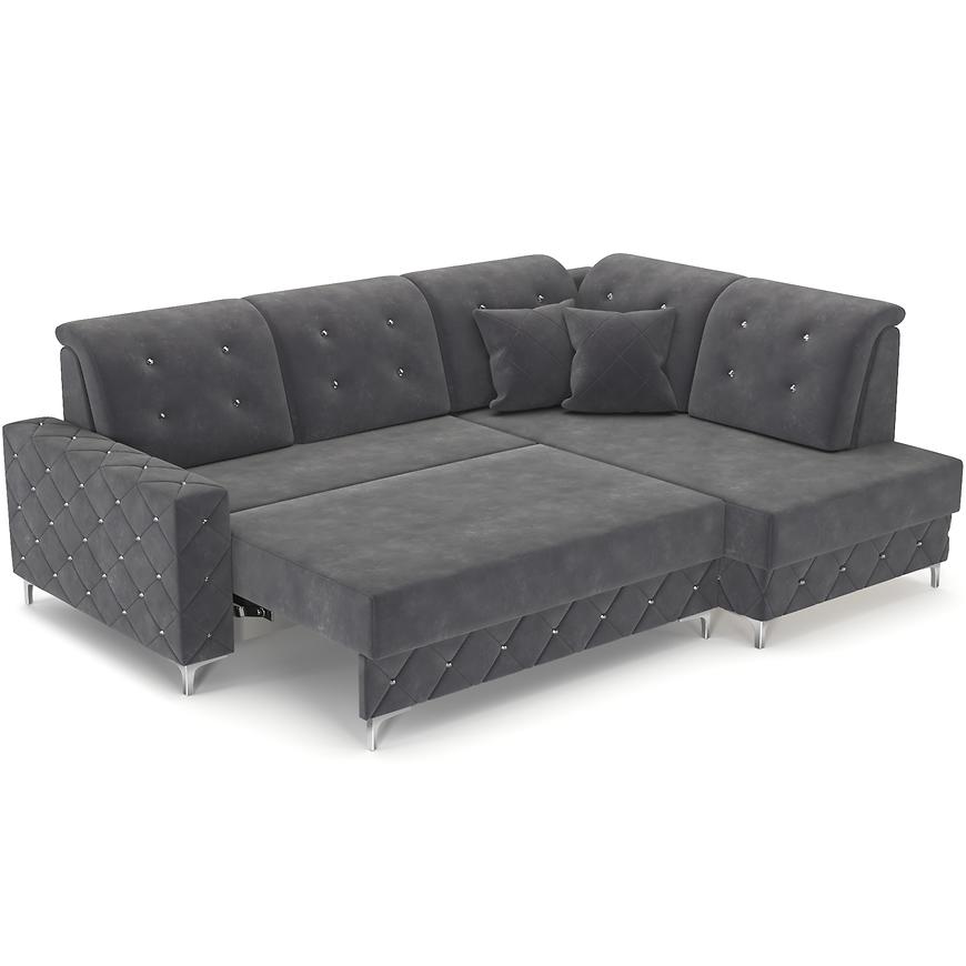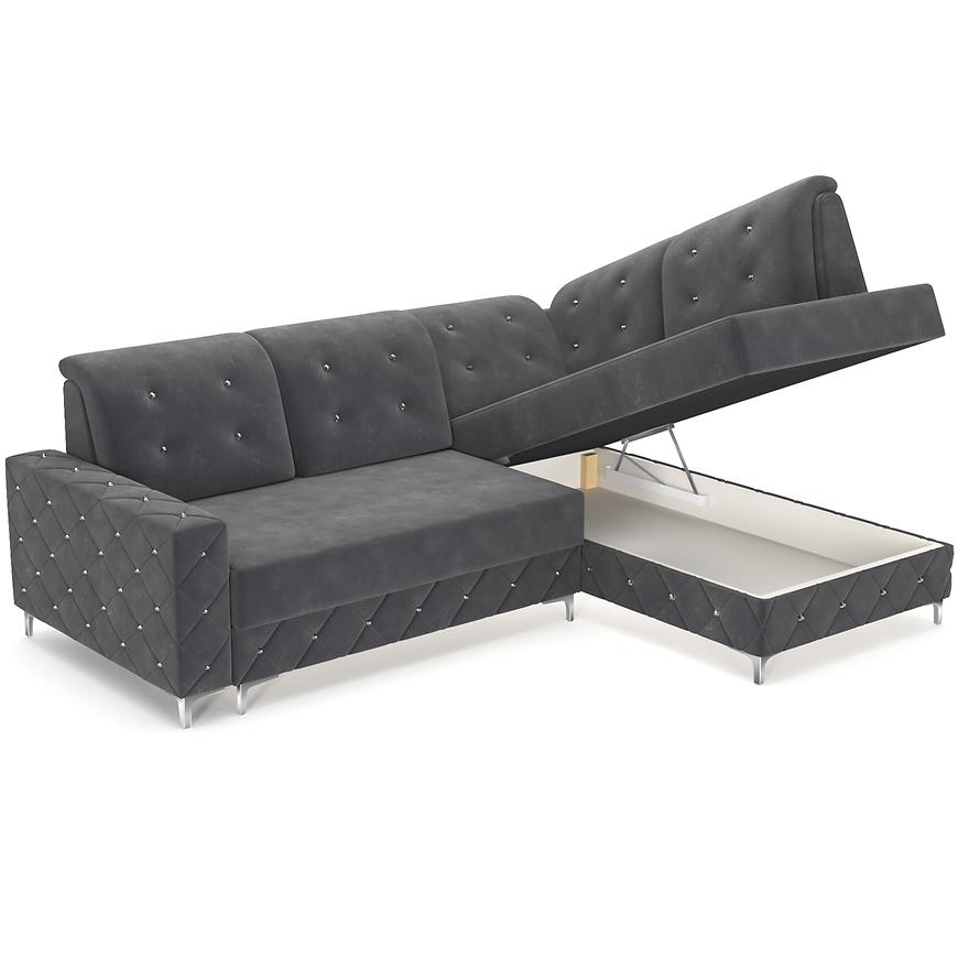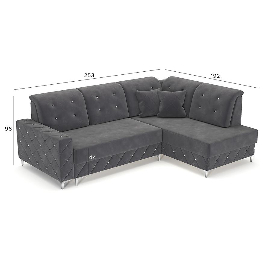Narożnik Lucas P Monolith 97 to funkcjonalny narożnik w kształcie L z orientacją prawą. Wymiary 253x192x96 cm, powierzchnia spania 140x190 cm oraz pojemnik na pościel gwarantują wygodę i praktyczność. Siedzisko wypełnione sprężyną falistą i pianką, mechanizm rozkładania puma, tapicerka w eleganckiej grafitowej tkaninie, srebrne nogi i komplet poduszek w zestawie.