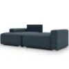 Narożnik Majesty wykonano w tkaninie Cremona, w niebieskim odcieniu, który dodaje wnętrzu lekkości i nowoczesnego charakteru. Dwie duże, ruchome poduszki oparciowe z ozdobnymi przeszyciami stanowią nie tylko komfortowe podparcie, ale także stylowy element dekoracyjny. Dzięki zastosowaniu nóżek narożnik nabiera eleganckiego i wyrazistego wyglądu, doskonale wpisując się w nowoczesne, jak i klasyczne aranżacje.