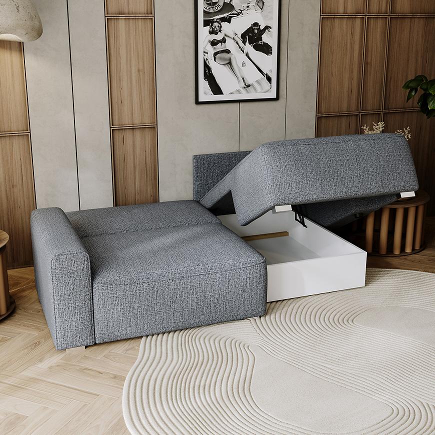Narożnik Majesty to funkcjonalność w najlepszym wydaniu. Wyposażony został w dwa pojemniki na pościel, co pozwala na praktyczne przechowywanie niezbędnych rzeczy, takich jak koce czy poduszki. Narożnik Majesty to połączenie estetyki, funkcjonalności i wygody. Wysokiej jakości materiały i precyzyjne wykonanie sprawiają, że ten model będzie służył przez lata, stanowiąc doskonały wybór dla osób ceniących zarówno nowoczesny design, jak i praktyczne rozwiązania.