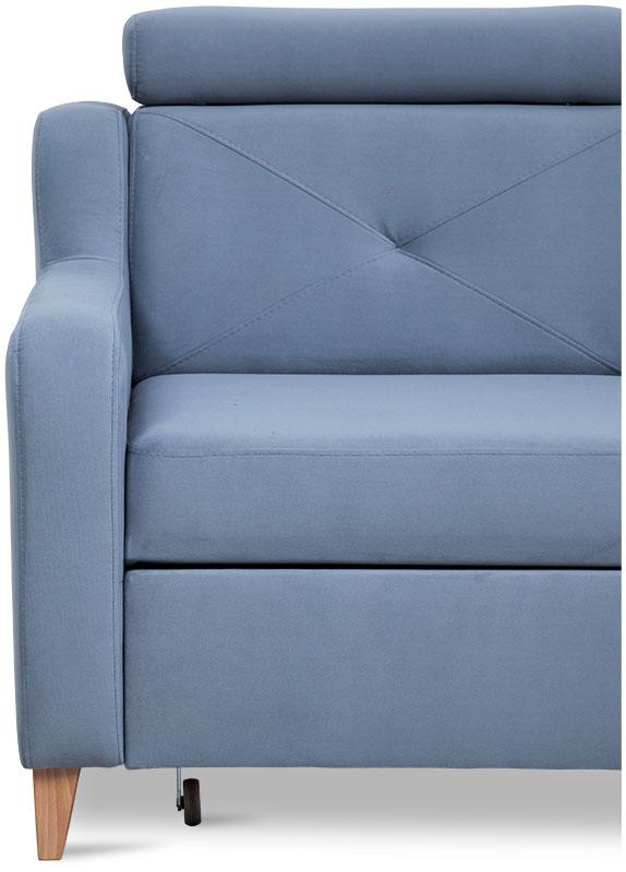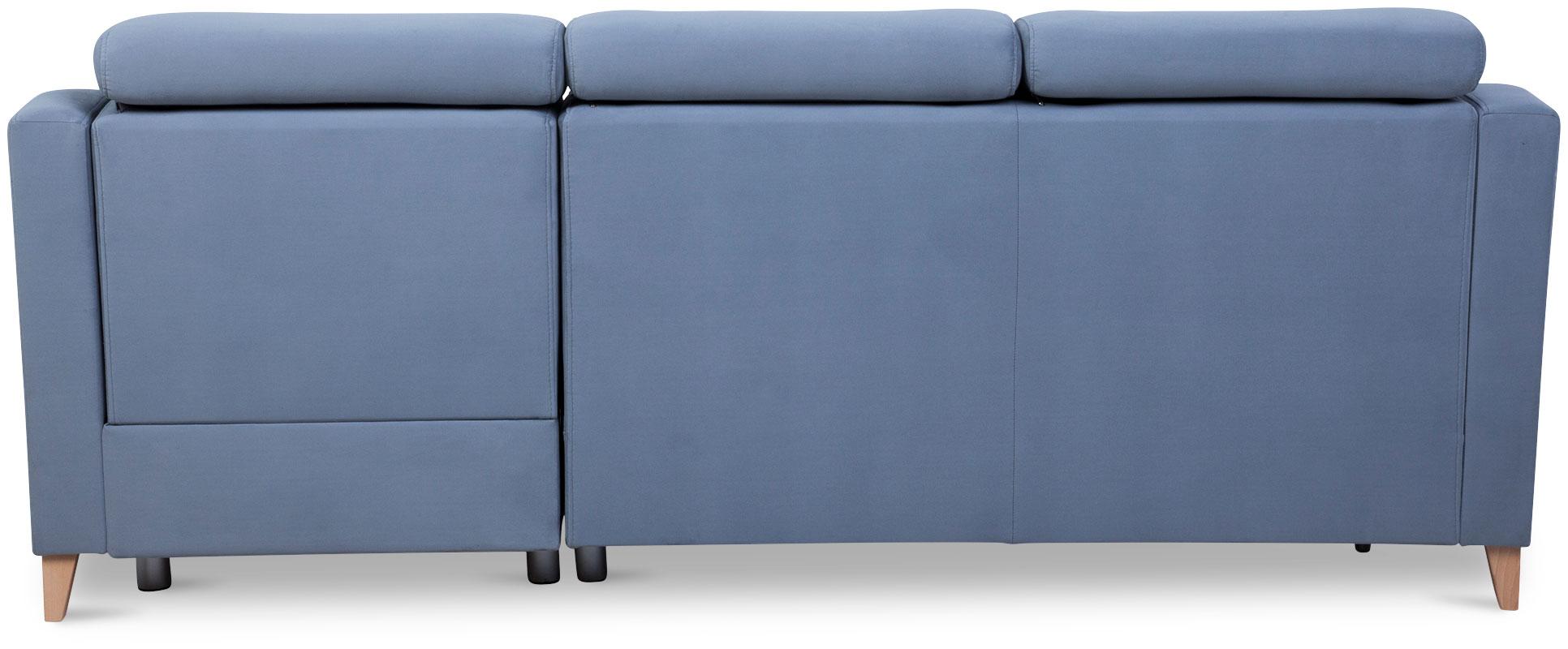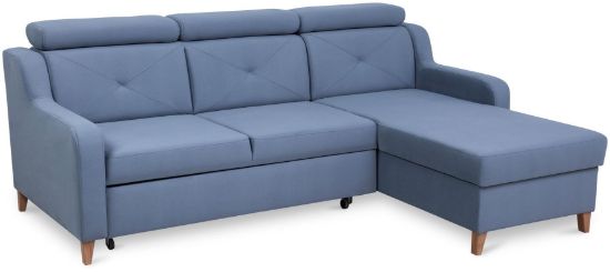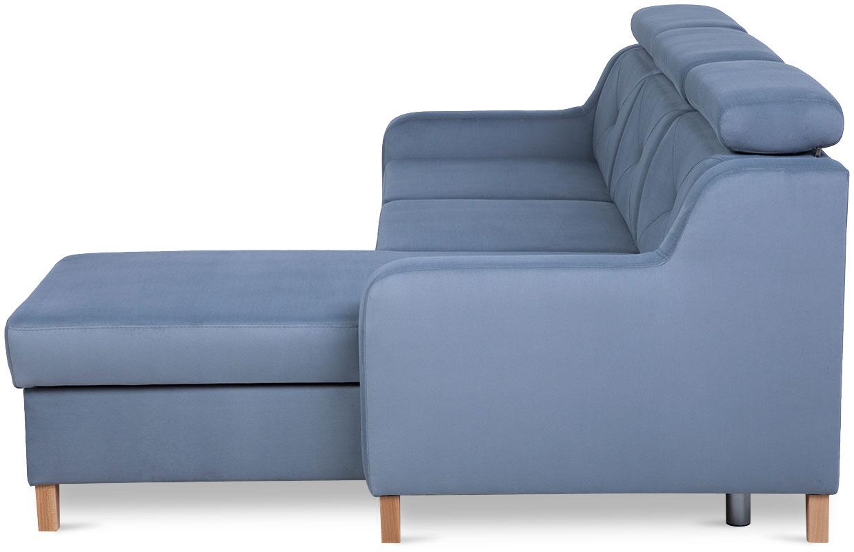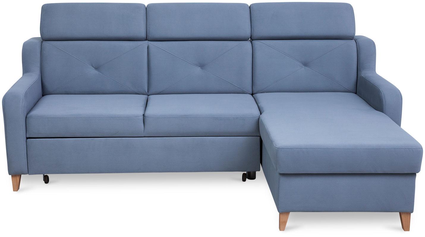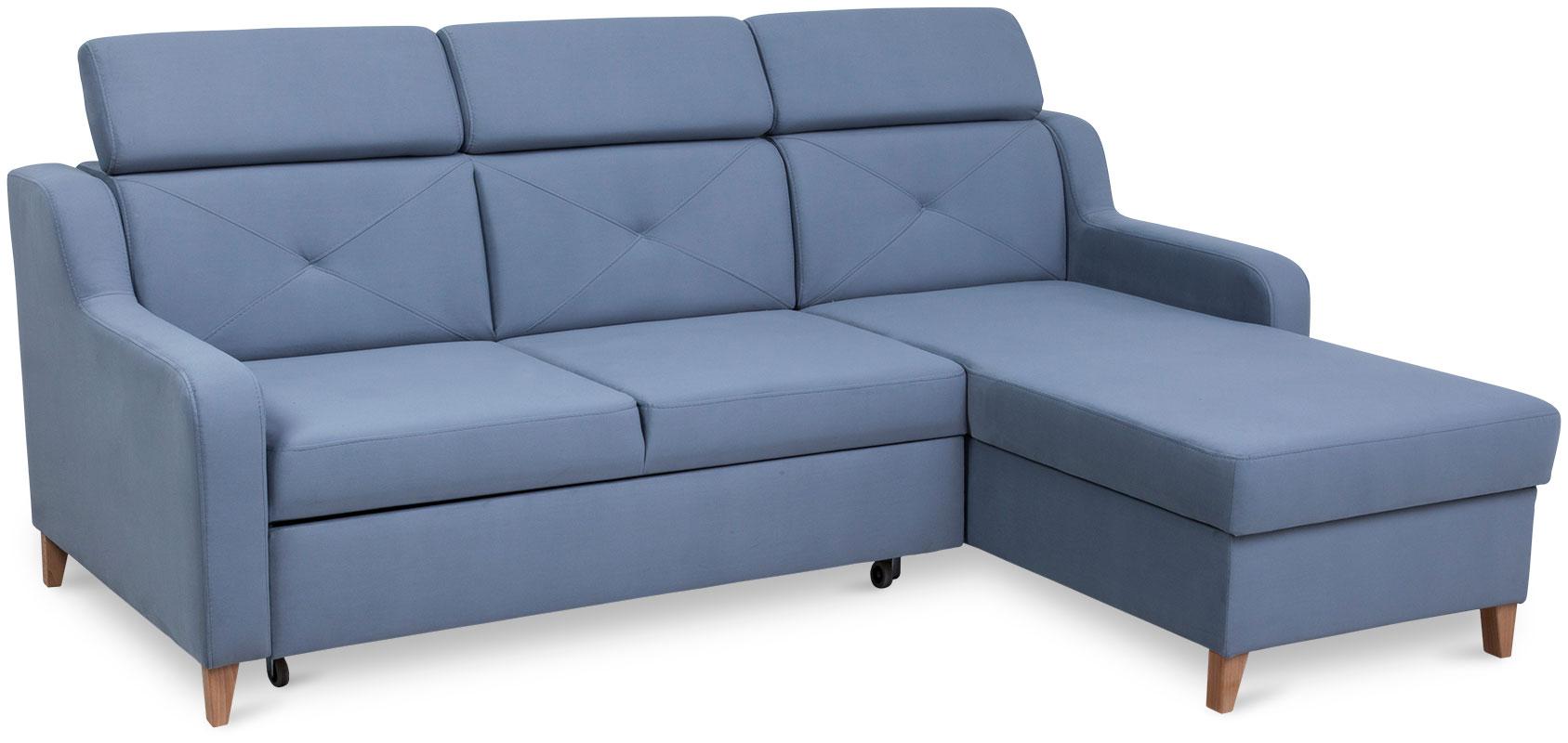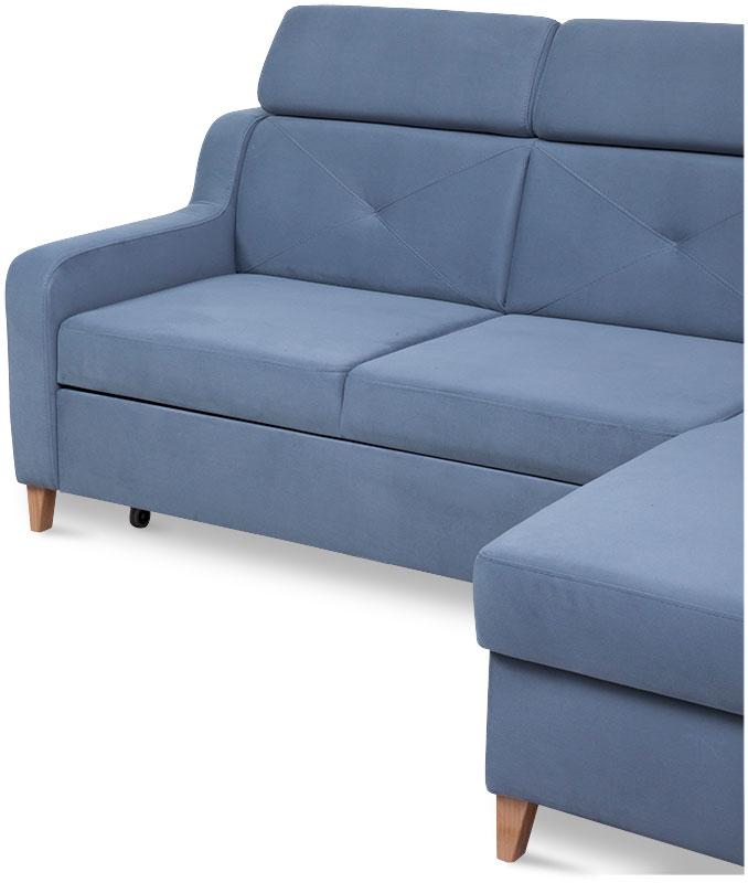 Narożnik Marbella w kolorze popielatym z funkcją spania, mechanizmem ułatwiającym rozkładanie oraz pojemnikiem na pościel. Narożnik wykonany w tkaninie CASABLANCA. Jest to tkanina o specjalnych właściwościach - trudnopalna, odporna na wchłanianie płynów (technologia uszlachetniania tkanin Cleanaboo) oraz jest przyjazna dla zwierząt, ponieważ nie jest podatna na zaciąganie i piling. Model dostępny w opcji prawej lub lewej. Narożnik posiada stabilne oparcie oraz regulowane zagłówki, co znacznie podnosi komfort wypoczynku. W siedzisku narożnika zastosowano sprężynę falistą oraz piankę. Sposób rozkładania delfin. Powierzchnia spania o wymiarach 125x195 cm. Wysokie, drewniane nóżki. Na oparciu zastosowane ozdobne przeszycia i wciągi.