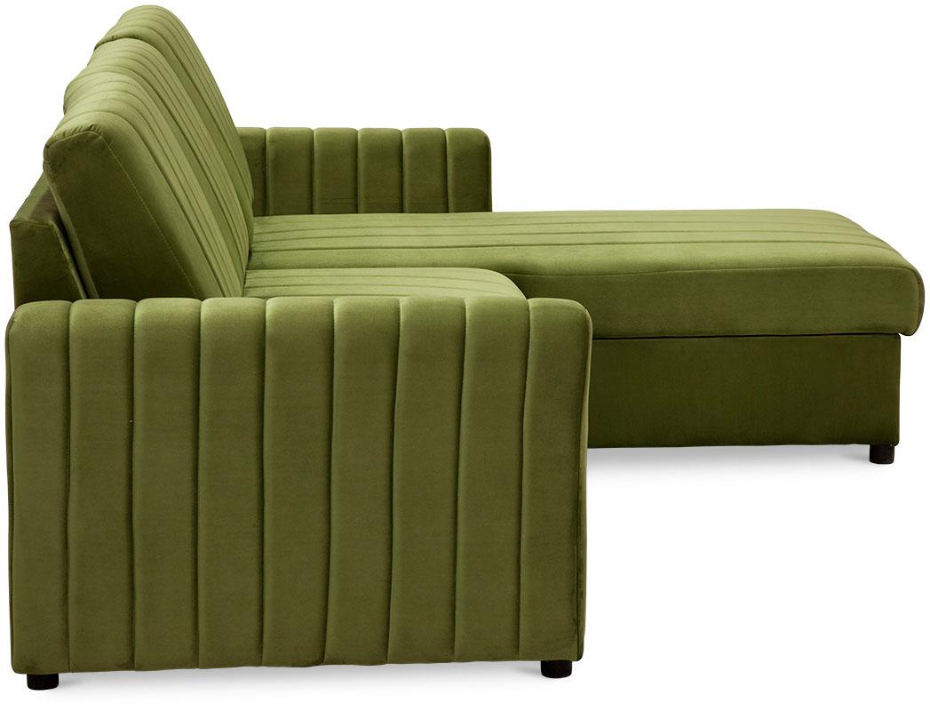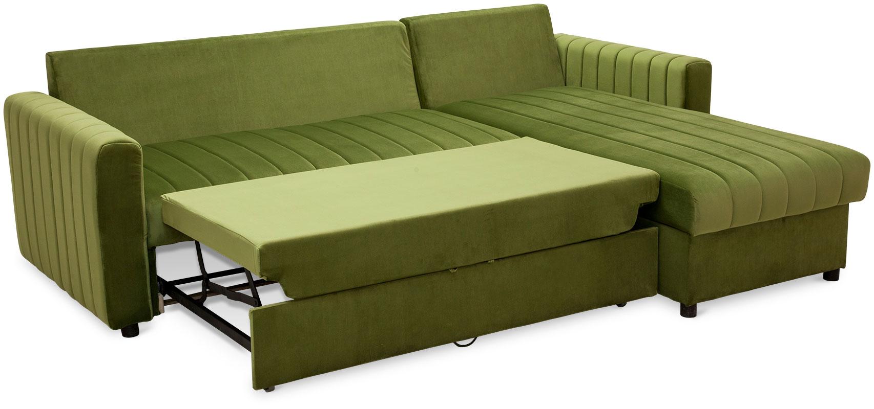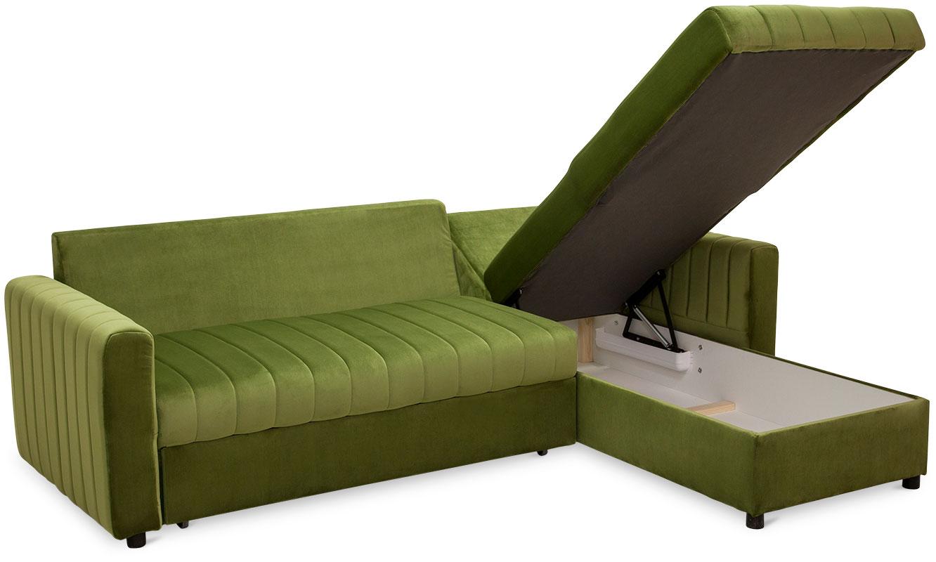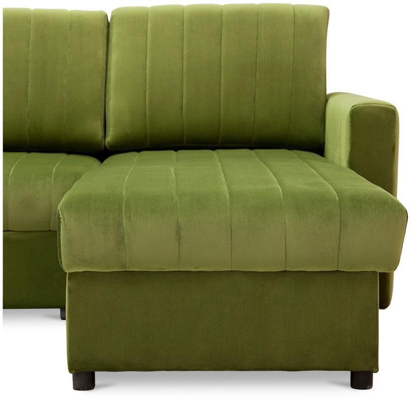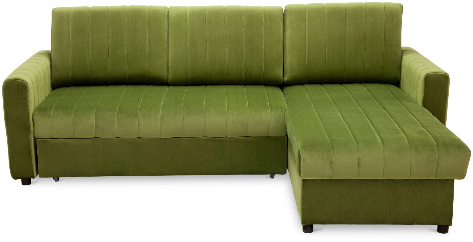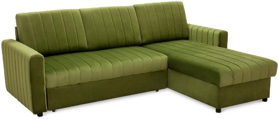 Narożnik Marco - z funkcją spania, mechanizmem ułatwiającym rozkładanie oraz pojemnikiem na pościel. Model dostępny w opcji uniwersalnej (prawy/lewy). Narożnik posiada trzy stabilne, duże poduszki oparciowe. W siedzisku narożnika zastosowano sprężynę falistą oraz piankę. Sposób rozkładania - nurek. Powierzchnia spania o wymiarach 139x205 cm. Narożnik wykonany z welurowej tkaniny z ozdobnymi przeszyciami na siedzisku, poduszkach oparciowych i boczkach.