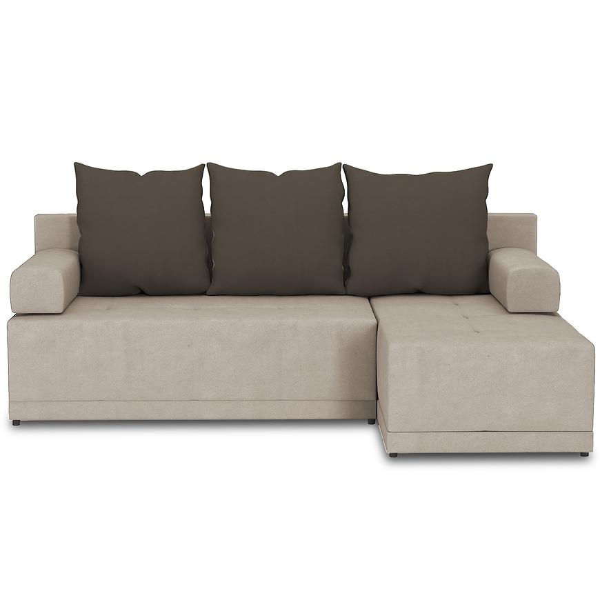 Mebel został tapicerowany wysokiej jakości tkaniną, która jest zarówno przyjemna w dotyku, jak i odporna na codzienne użytkowanie, co sprawia, że narożnik zachowa swój estetyczny wygląd przez długie lata. Wypełnienie siedziska stanowi miękka pianka, która zapewnia optymalne podparcie i komfort zarówno podczas krótkiego odpoczynku, jak i dłuższych momentów relaksu. To idealne miejsce na wspólne wieczory z rodziną, czy relaks przy ulubionej książce.