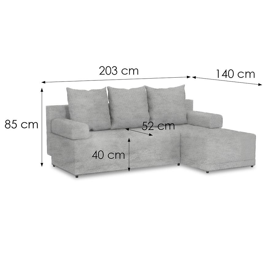 Narożnik Max Whisper 17 uniwersalny to mały narożnik w klasycznym stylu, w kształcie litery L, łączący wygodę i funkcjonalność. Posiada funkcję spania o powierzchni 203×125 cm oraz pojemnik na pościel, co ułatwia codzienne użytkowanie. Tapicerowany trwałą szarą tkaniną, z wypełnieniem na piance, zapewnia komfortowe siedzisko. Stabilne czarne nóżki podkreślają elegancję mebla, a zestaw uzupełniają praktyczne poduszki dekoracyjne. Idealny wybór dla osób ceniących komfort i funkcjonalność.