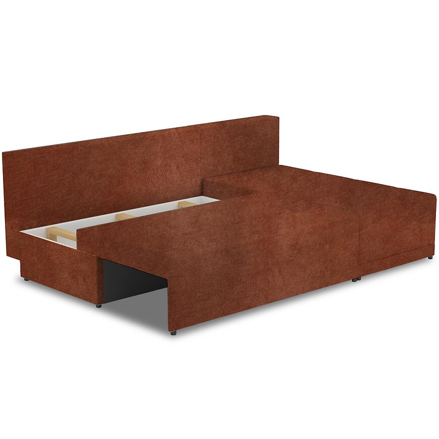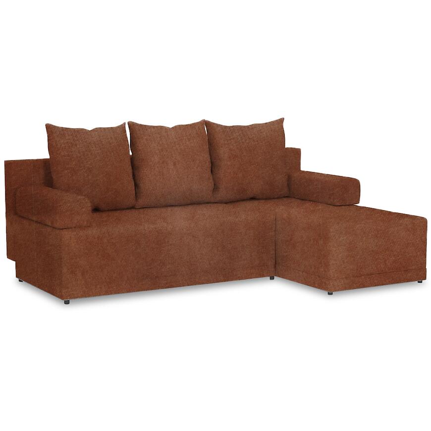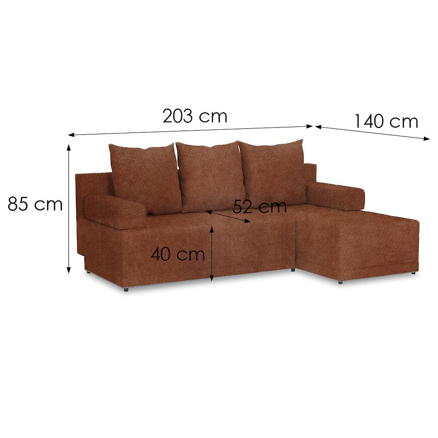 Narożnik Max Whisper 8 uniwersalny to mały narożnik w klasycznym stylu, w kształcie litery L, łączący wygodę i praktyczność. Posiada funkcję spania o powierzchni 203×125 cm oraz pojemnik na pościel, co ułatwia codzienne użytkowanie. Tapicerowany trwałą rudą tkaniną, z wypełnieniem na piance, zapewnia komfortowe siedzisko. Stabilne czarne nóżki podkreślają elegancję mebla, a zestaw uzupełniają praktyczne poduszki dekoracyjne. Doskonały wybór dla osób ceniących komfort i funkcjonalność.