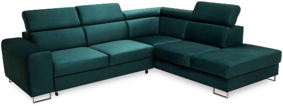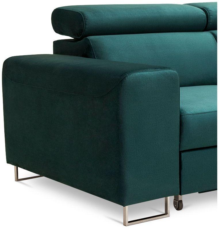 Elegancki narożnik Melo do idealne rozwiązanie do każdego domu. Łączy w sobie wysoki komfort podczas wypoczynku, funkcjonalność oraz stylowy design. Powierzchnia spania po rozłożeniu wynosi 126x194cm. Dużym udogodnieniem jest dodatkowe miejsce do przechowywania w postaci pojemnika na pościel, który pozwoli zagospodarować przestrzeń. Wygodne, lekko profilowane oparcie, regulowane zagłówki i podłokietniki zapewniają komfortowy wypoczynek.