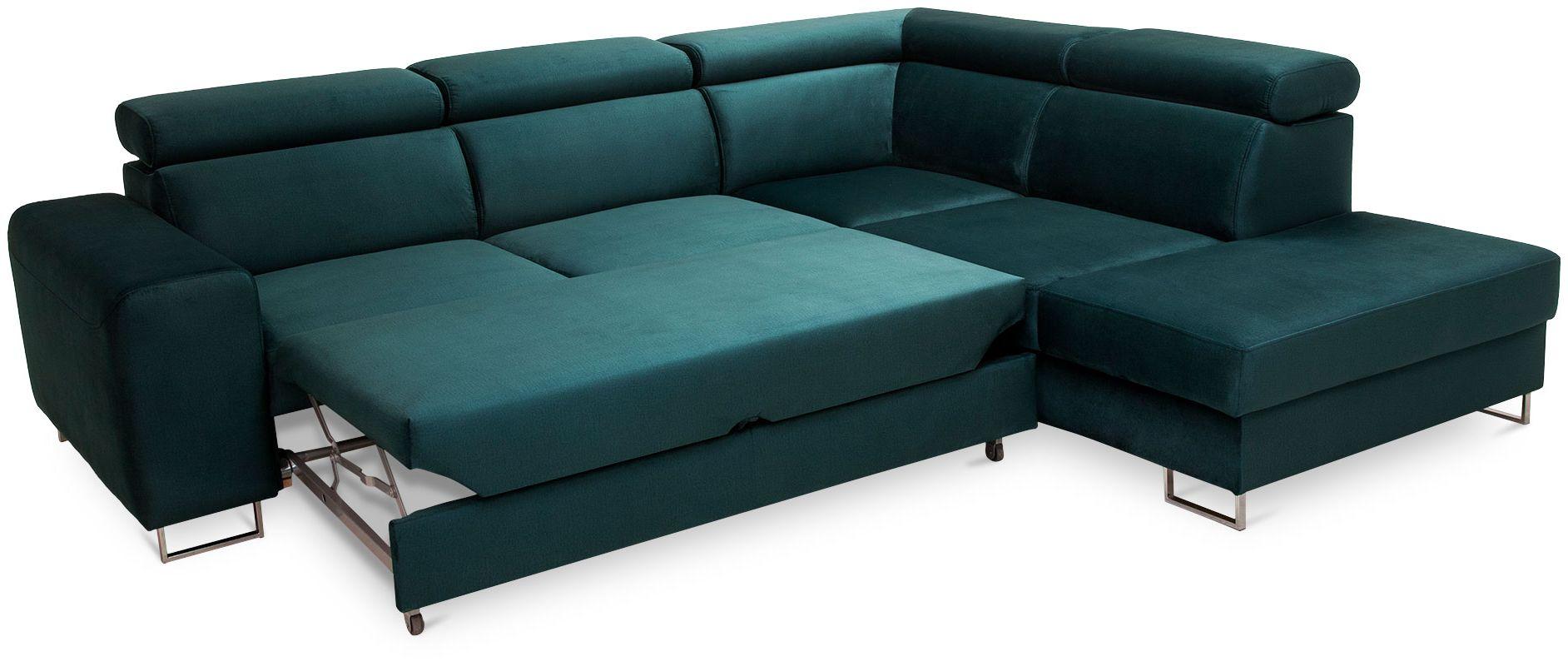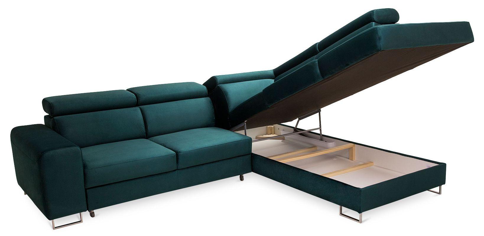 Narożnik z funkcją spania i pojemnikiem na pościel