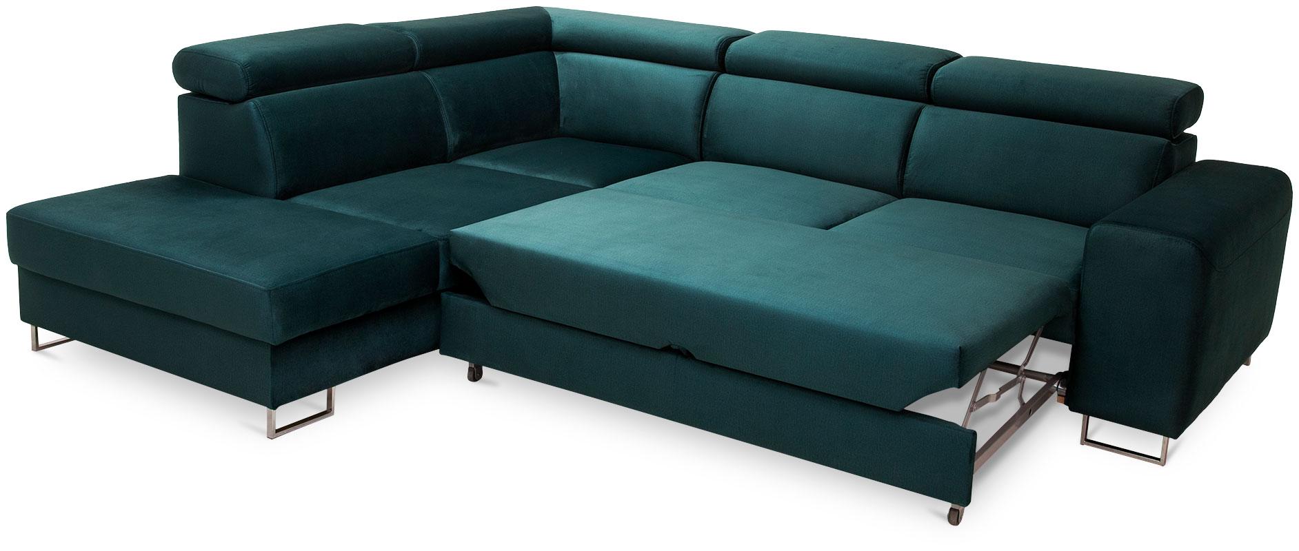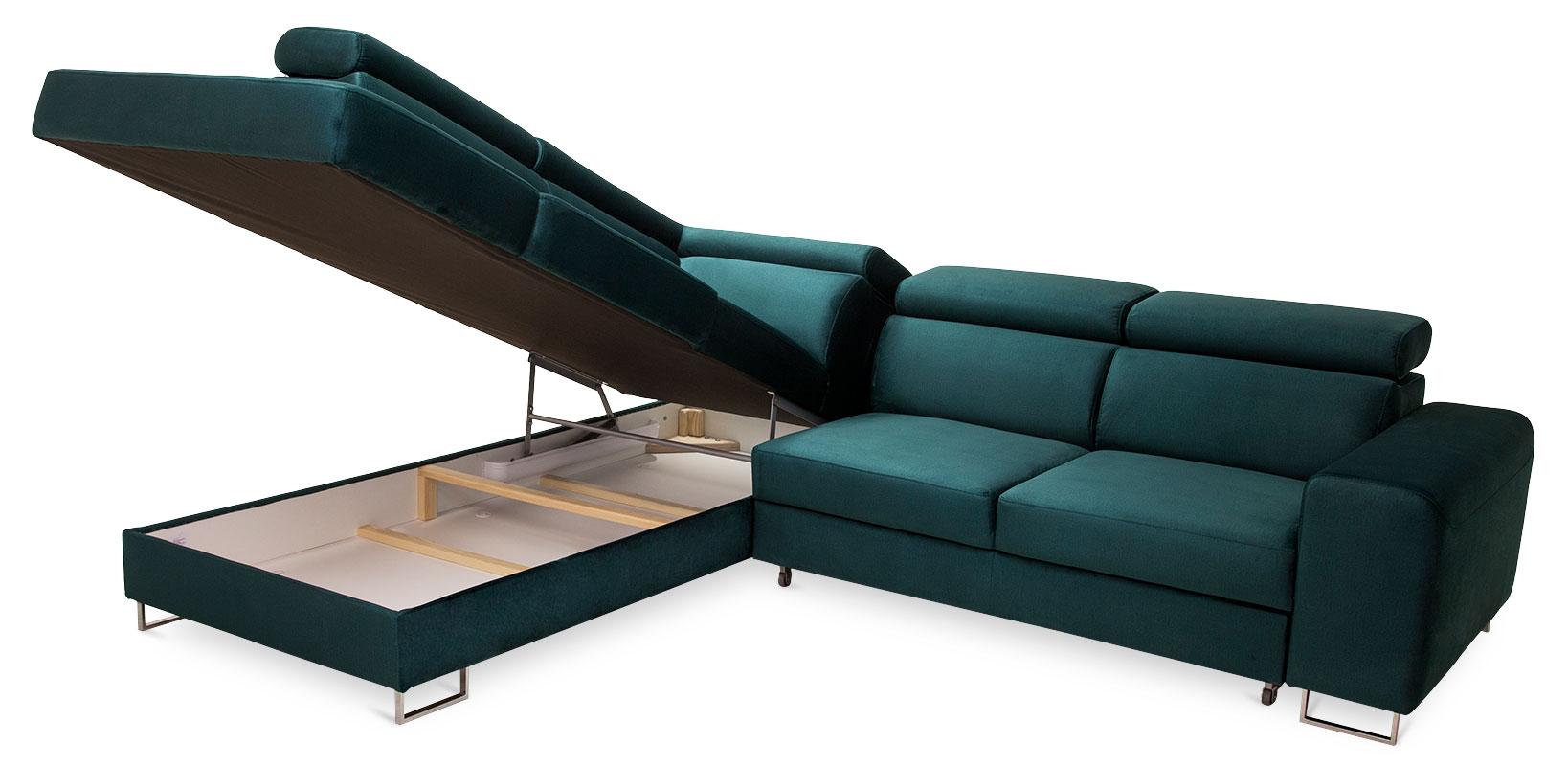 Narożnik z funkcją spania i pojemnikiem na pościel