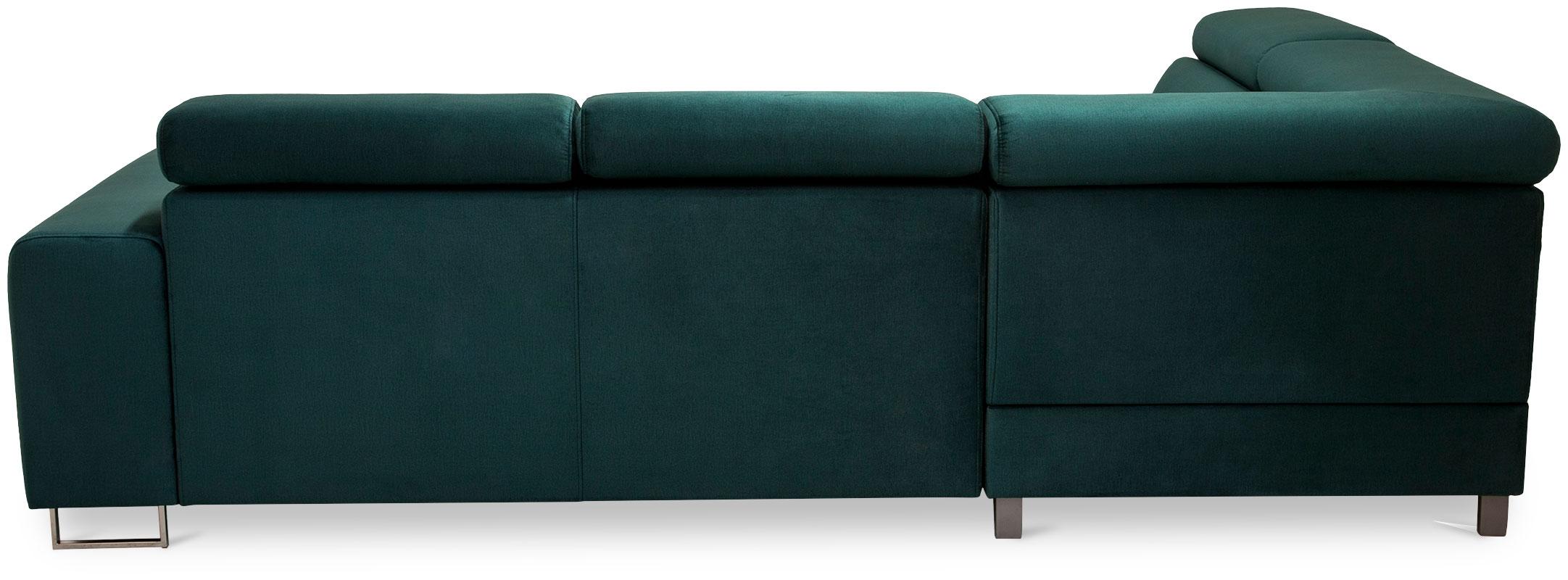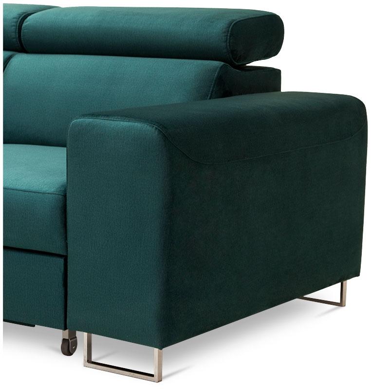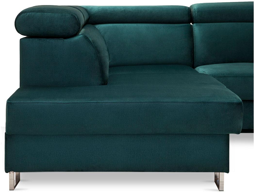 Elegancki narożnik Melo do idealne rozwiązanie do każdego domu. Łączy w sobie wysoki komfort podczas wypoczynku, funkcjonalność oraz stylowy design. Powierzchnia spania po rozłożeniu wynosi 126x194cm. Dużym udogodnieniem jest dodatkowe miejsce do przechowywania w postaci pojemnika na pościel, który pozwoli zagospodarować przestrzeń. Wygodne, lekko profilowane oparcie, regulowane zagłówki i podłokietniki zapewniają komfortowy wypoczynek.