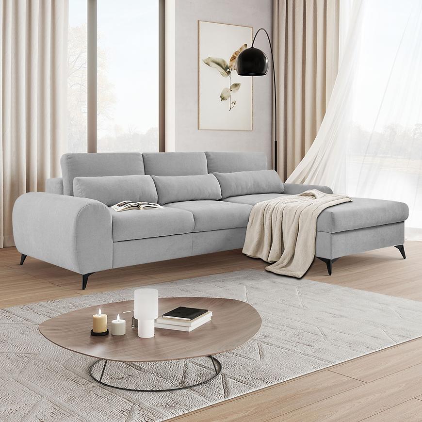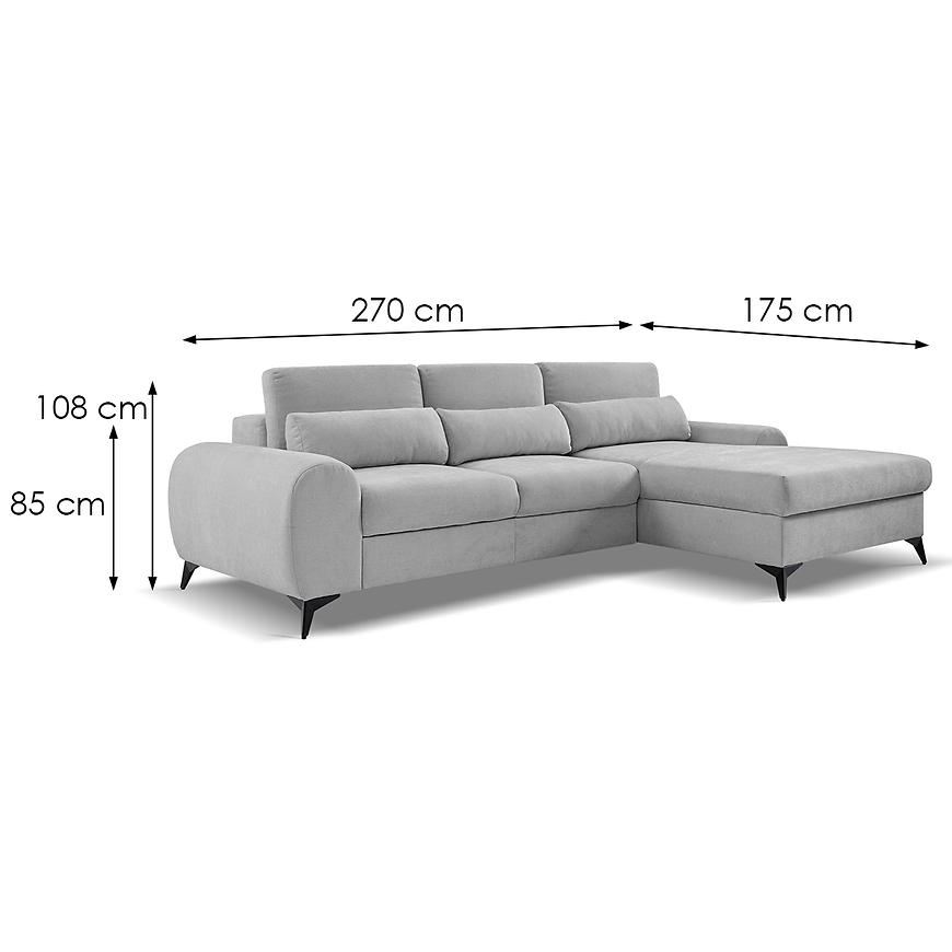 Narożnik Milan L prawostronny w eleganckim szarym kolorze to stylowy i funkcjonalny mebel wypoczynkowy, idealny do średnich salonów. Tapicerowany wysokiej jakości tkaniną, z siedziskiem wypełnionym sprężyną falistą, zapewnia komfort i wygodę codziennego użytkowania. Wyposażony w funkcję spania o powierzchni 140x215 cm, system rozkładania typu delfin oraz pojemnik na pościel, łączy praktyczność z nowoczesnym designem. Regulowany zagłówek i solidne czarne nogi podkreślają elegancki charakter narożnika. Mebel jest łatwy do złożenia, w komplecie posiada poduszki i stanowi wygodny, estetyczny element wyposażenia wnętrza.