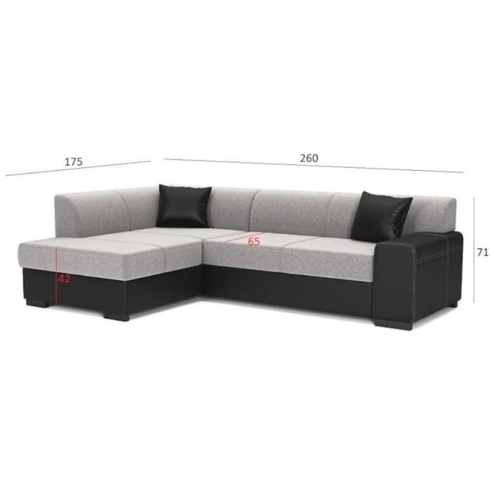Powierzchnia po rozłożeniu wynosi 195x135 cm. Dodatkowe miejsce do przechowywania w postaci pojemnika na pościel pozwolą zagospodarować przestrzeń. Lekko profilowane oparcie oraz wygodne, sprężynowe siedzisko zapewniają komfortowy wypoczynek.