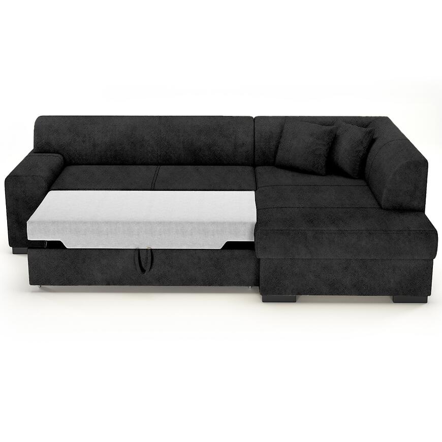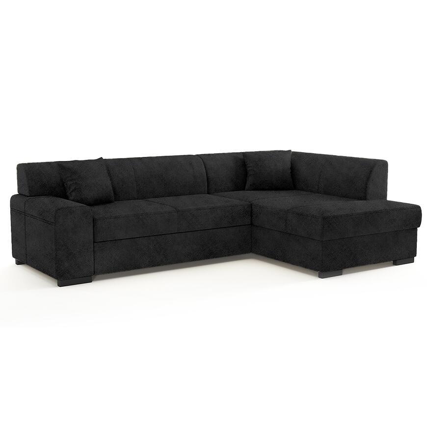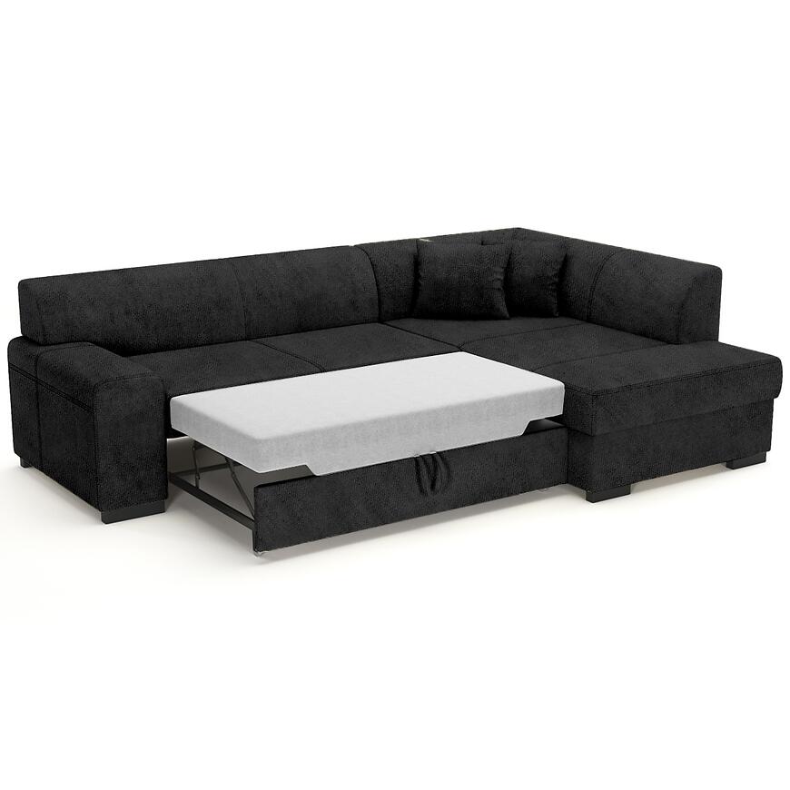 Narożnik Minos L Vogue 18 to klasyczny narożnik w kształcie litery L o wymiarach 260x175x71 cm z lewą orientacją, łączący elegancję i funkcjonalność. Wyposażony w funkcję spania o powierzchni 195x135 cm oraz praktyczny pojemnik na pościel, zapewnia wygodę i dodatkowe miejsce do przechowywania. Siedzisko wypełnione sprężyną bonell, tapicerka z trwałej tkaniny w kolorze czarnym oraz stabilne nogi z drewna gwarantują komfort i solidność. Narożnik rozkłada się w sposób delfin i posiada poduszki w zestawie, co czyni go praktycznym i stylowym meblem do klasycznych wnętrz.