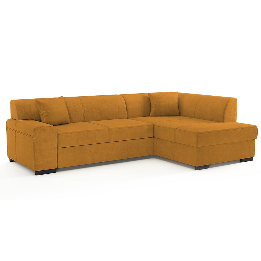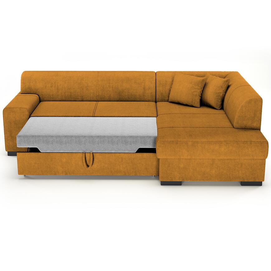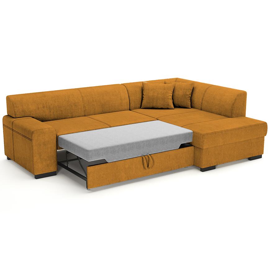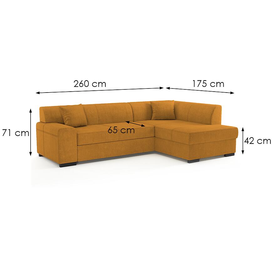 Narożnik Minos P Vogue 9 to klasyczny narożnik w kształcie litery L o wymiarach 260x175x71 cm, łączący elegancję z funkcjonalnością. Wyposażony w funkcję spania o powierzchni 195x135 cm oraz praktyczny pojemnik na pościel, zapewnia wygodę i dodatkowe miejsce do przechowywania. Siedzisko wypełnione sprężyną bonell, tapicerka z trwałej tkaniny w kolorze musztardowym oraz stabilne nogi z drewna gwarantują komfort i solidność. Narożnik rozkłada się w sposób delfin i posiada poduszki w zestawie, co czyni go praktycznym i stylowym meblem do klasycznych wnętrz.