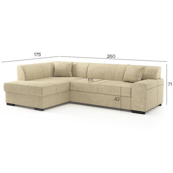 Powierzchnia spania po rozłożeniu wynosi 195x135 cm. Dodatkowe miejsce do przechowywania w postaci pojemnika na pościel pozwolą zagospodarować przestrzeń. Lekko profilowane oparcie oraz wygodne, sprężynowe siedzisko zapewniają komfortowy wypoczynek.