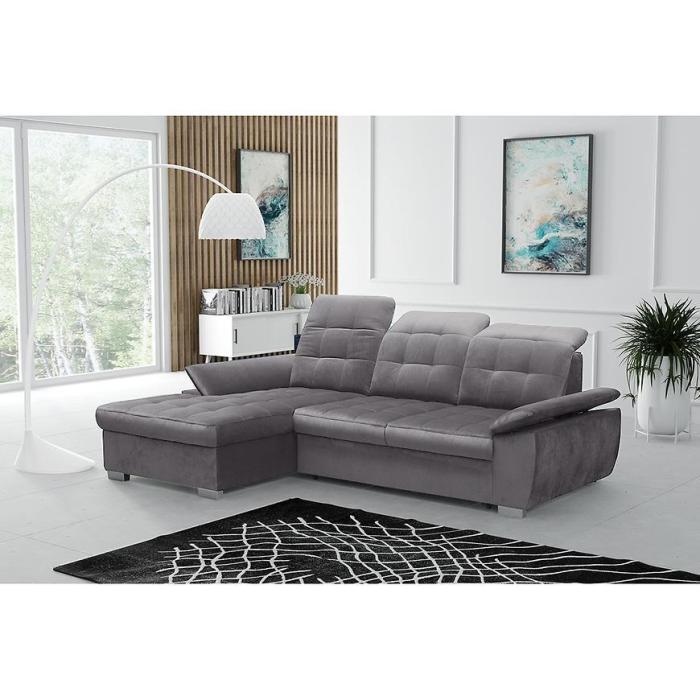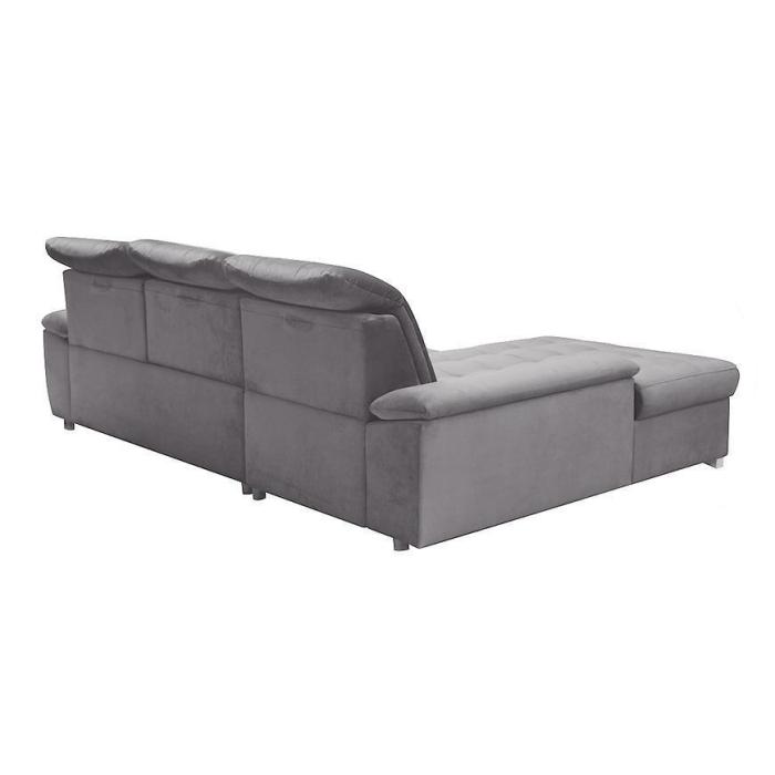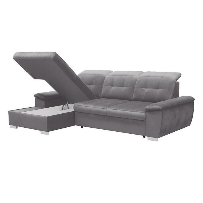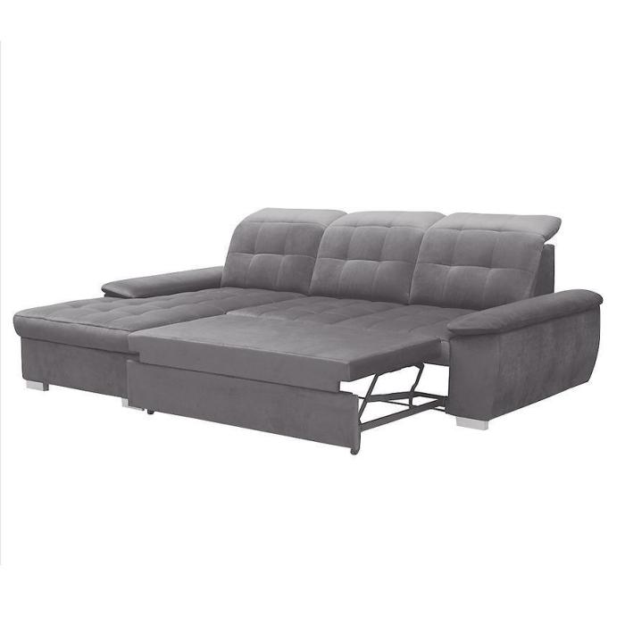 Narożnik Miron z funkcją spania został pokryty tkaniną. Prostotę i łatwość użytkowania gwarantuje system rozkładania typu delfin. Jest to szybki, prosty i wygodny sposób rozkładania. Jest jednym z najbardziej popularnych systemów rozkładania, który jest wykorzystywany w narożnikach. Po rozłożeniu to okazjonalne miejsce do spania o wymiarach 126x197 cm. Mebel posiada pojemnik, do którego można schować pościel, dodatkowe koce czy też poduszki. W siedzisku zastosowano sprężynę falistą, która dostosowuje się do ciężaru i kształtu ciała, zapewniając tym samym wysoki komfort siedzenia. Ten niepowtarzalny mebel wypoczynkowy stworzono z myślą o funkcjonalności i eleganckim wyglądzie. Narożnik dostępny w wersji prawostronnej i lewostronnej.