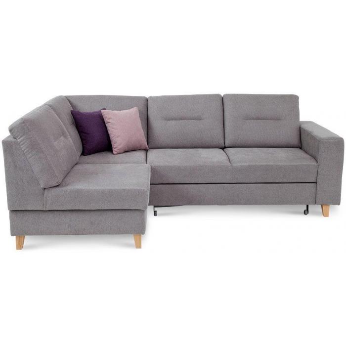Narożna kanapa Mito to nie tylko stylowy element wyposażenia, posiada on pożądaną funkcję spania. Powierzchnia spania po rozłożeniu wynosi 123x188 cm. Pojemnik na pościel pozwoli zagospodarować przestrzeń. Dodatkowe miejsce do przechowywania jest na wagę złota zwłaszcza w małych mieszkaniach. Lekko profilowane oparcie oraz wygodne, sprężynowe siedzisko zapewniają komfortowy wypoczynek.