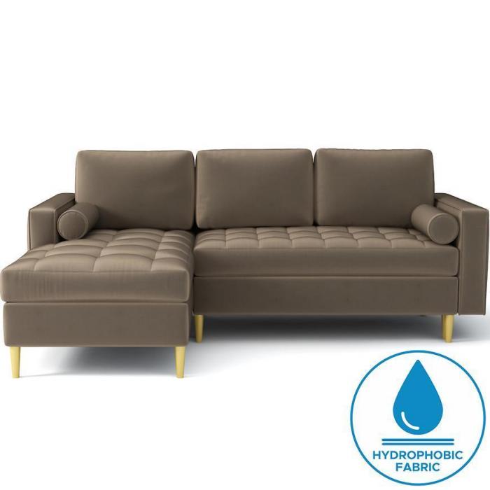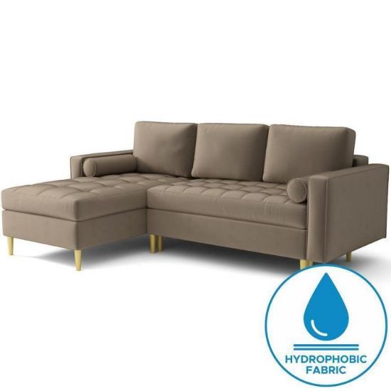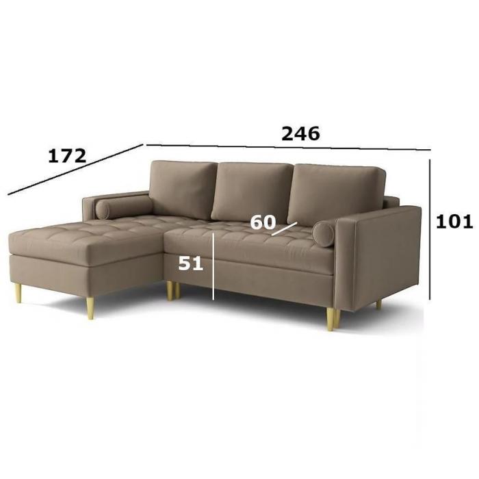Narożnik Monza wyposażony w pikowane siedzisko, dekoracyjne poduszki oraz charakterystyczne, wysokie nóżki z całą pewnością będzie ozdobą Twojego salonu. Narożnik rozkładany to średniej wielkości narożnik wykończony w całości lekko połyskującą, miłą w dotyku i co najważniejsze hydrofobową tkaniną o niebagatelnym kolorze. To zatem uniwersalny element wystroju, który będzie pasował zarówno do eleganckiego salonu, jak i nowoczesnego pokoju dziennego. Nie tylko wygląd czy funkcjonalność, ale przede wszystkim komfort użytkowania sprawia, że ten mebel jest chętnie wybieranym elementem do wyposażenia niemalże każdego wnętrza.