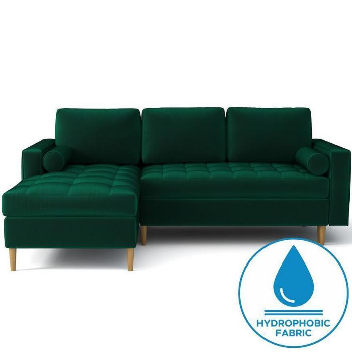 Narożnik Monza wyposażony w pikowane siedzisko, dekoracyjne poduszki oraz charakterystyczne, wysokie nóżki z całą pewnością będzie ozdobą Twojego salonu. Narożnik rozkładany to średniej wielkości narożnik wykończony w całości lekko połyskującą, miłą w dotyku i co najważniejsze hydrofobową tkaniną o niebagatelnym kolorze. To zatem uniwersalny element wystroju, który będzie pasował zarówno do eleganckiego salonu, jak i nowoczesnego pokoju dziennego. Nie tylko wygląd czy funkcjonalność, ale przede wszystkim komfort użytkowania sprawia, że ten mebel jest chętnie wybieranym elementem do wyposażenia niemalże każdego wnętrza.
