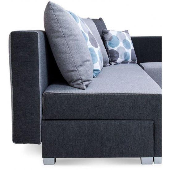 Narożna kanapa Narvik z funkcją spania to bardzo praktyczne rozwiązanie. Dodatkowym udogodnieniem jest pojemnik na pościel o dodatkowe miejsce pozwoli zagospodarować przestrzeń. Duże poduszki oparciowe oraz wygodne, sprężynowe siedzisko zapewniają komfortowy wypoczynek.