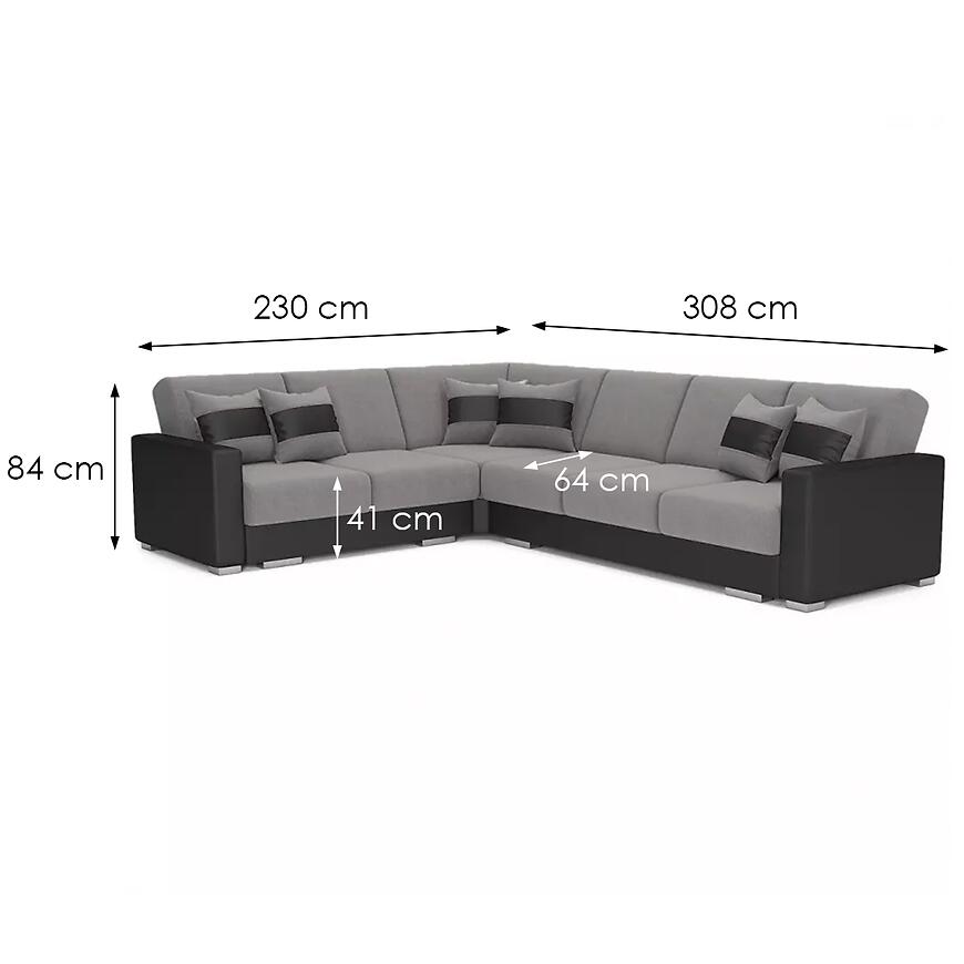 Kanapa narożna Nero tapicerowana jest tkaniną w połączeniu z ekoskórą w dwóch, kontrastowych kolorach. Dzięki ponadczasowemu wzornictwu kanapa narożna stanie się gustownym dopełnieniem zarówno klasycznych, jak i nowoczesnych wnętrz. Nowoczesny narożnik Nero świetnie sprawdzi się w dużym pokoju dziennym czy salonie, pełniąc rolę wygodnego wypoczynku dla całej rodziny. Dodatkowym atutem jest możliwość modułowej rozbudowy mebla.