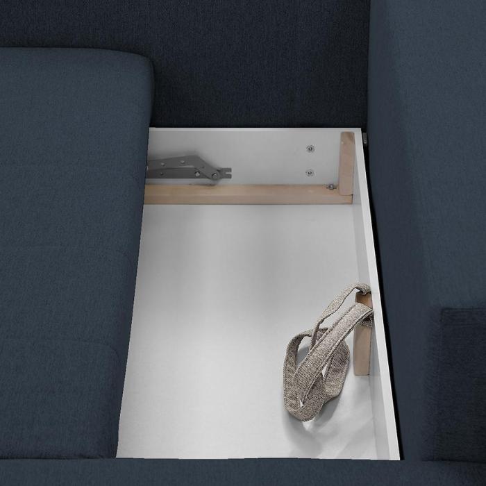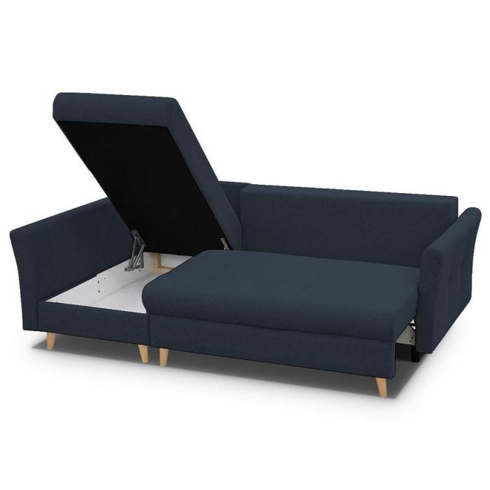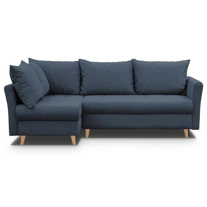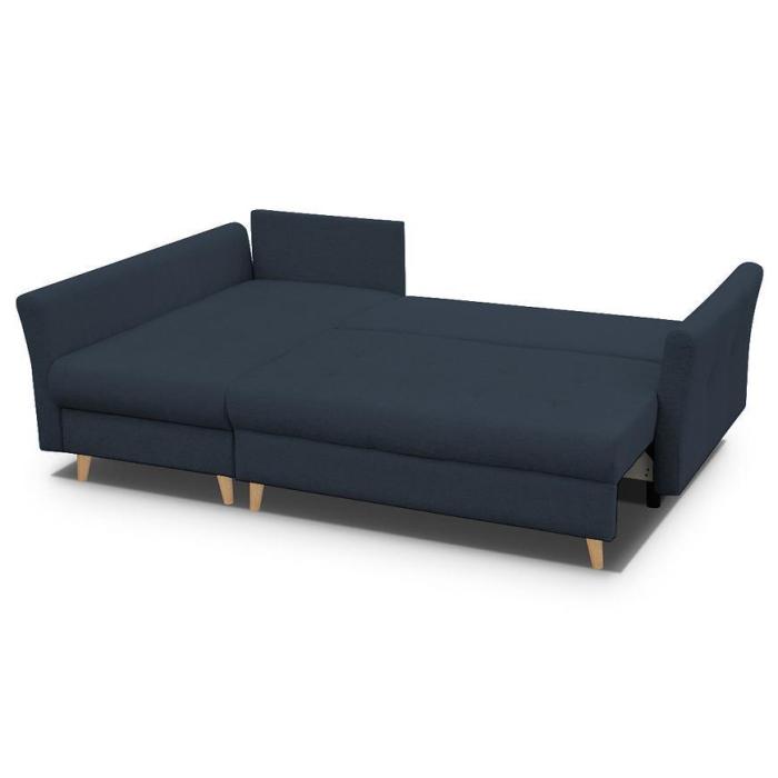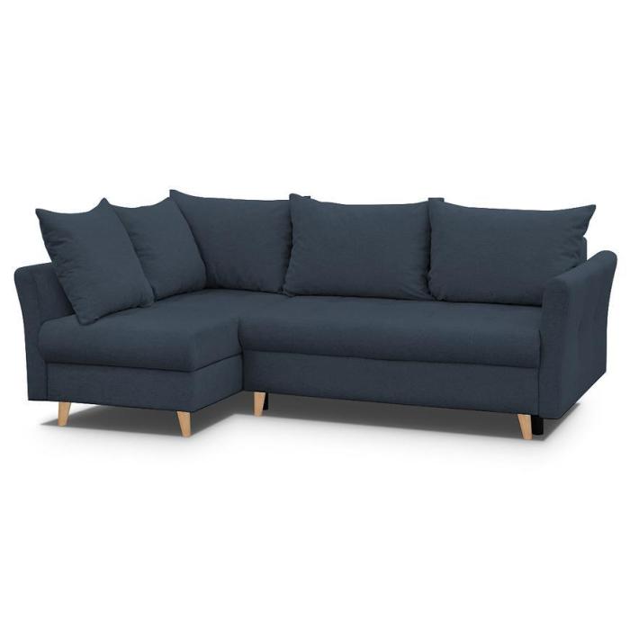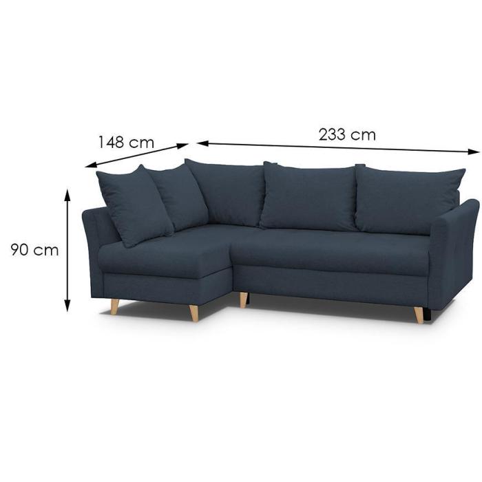 Narożnik NIKO to elegancja, wygoda i funkcjonalność. Jego bazowym kolorem jest granatowy. Kanapa narożna rozkładana to mebel idealny do wspólnego wypoczynku z rodziną i znajomymi. Również doskonale wkomponuje się biurowe aranżacje. Nowoczesny narożnik w ponadczasowym stylu z funkcją spania wyposażony jest w sprężyny faliste. Oparcie to poduszki czyli dodatkowy komfort podczas wypoczynku lub oglądania telewizji. Mały narożnik z dwoma pojemnikami to idealne rozwiązanie, które świetnie sprawdzi się pokoju dziennym. Meble wypoczynkowe wyposażone w funkcję spania to doskonały wybór na długie lata, które zapewnią wysoki komfort podczas wypoczynku.