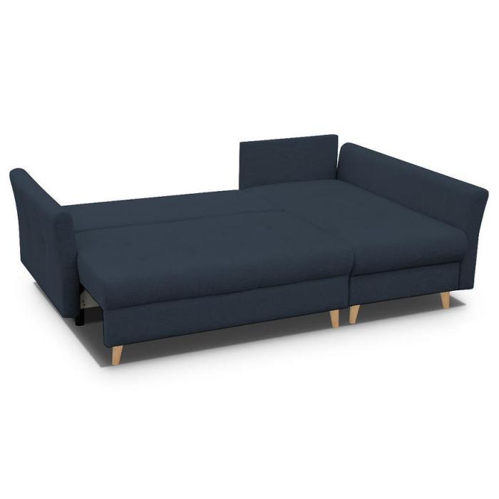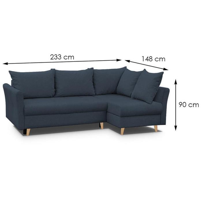 Narożnik NIKO to elegancja, wygoda i funkcjonalność. Jego bazowym kolorem jest granatowy. Kanapa narożna rozkładana to mebel idealny do wspólnego wypoczynku z rodziną i znajomymi. Również doskonale wkomponuje się biurowe aranżacje. Nowoczesny narożnik w ponadczasowym stylu z funkcją spania wyposażony jest w sprężyny faliste. Oparcie to poduszki czyli dodatkowy komfort podczas wypoczynku lub oglądania telewizji. Mały narożnik z dwoma pojemnikami to idealne rozwiązanie, które świetnie sprawdzi się pokoju dziennym. Meble wypoczynkowe wyposażone w funkcję spania to doskonały wybór na długie lata, które zapewnią wysoki komfort podczas wypoczynku.
