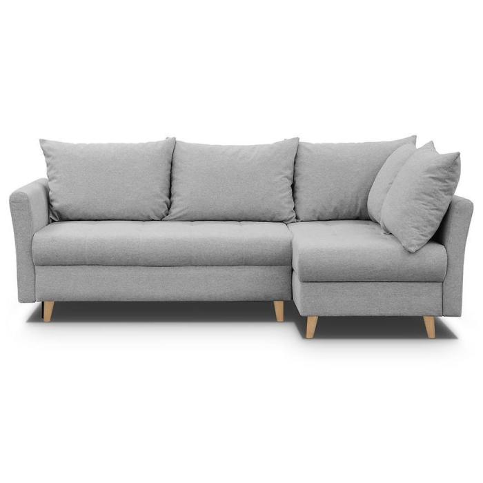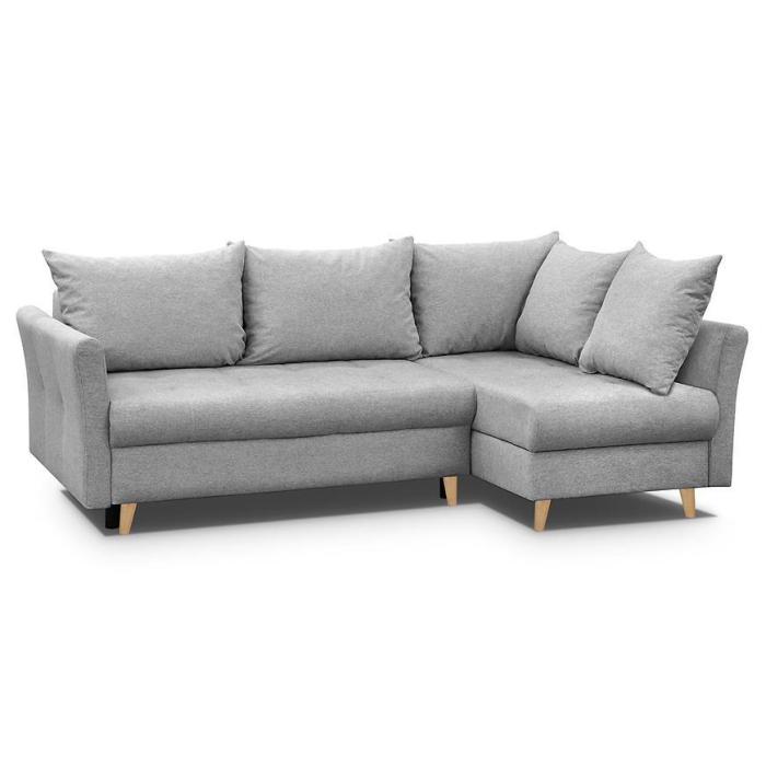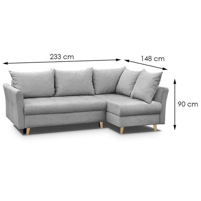 Narożnik NIKO to elegancja, wygoda i funkcjonalność. Jego bazowym kolorem jest szary. Kanapa narożna rozkładana to mebel idealny do wspólnego wypoczynku z rodziną i znajomymi. Również doskonale wkomponuje się biurowe aranżacje. Nowoczesny narożnik w ponadczasowym stylu z funkcją spania wyposażony jest w sprężyny faliste. Oparcie to poduszki czyli dodatkowy komfort podczas wypoczynku lub oglądania telewizji. Mały narożnik z dwoma pojemnikami to idealne rozwiązanie, które świetnie sprawdzi się pokoju dziennym. Meble wypoczynkowe wyposażone w funkcję spania to doskonały wybór na długie lata, które zapewnią wysoki komfort podczas wypoczynku.