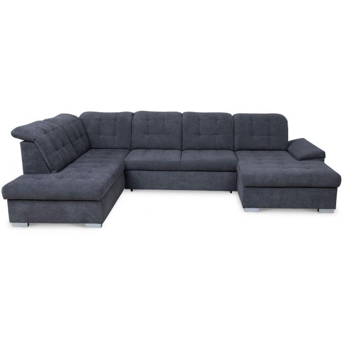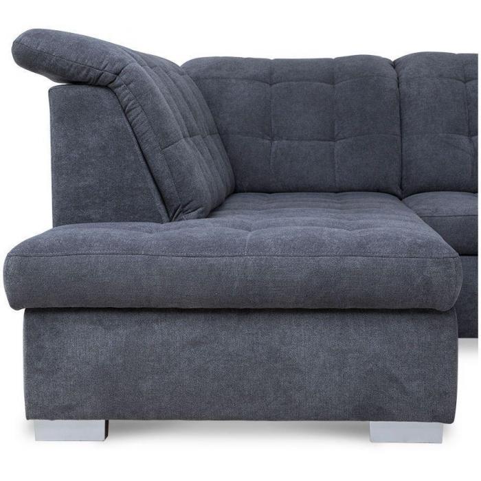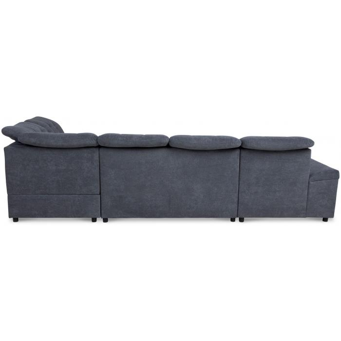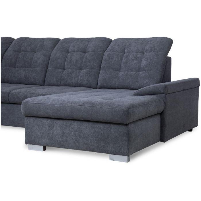 Narożna kanapa Nixon z funkcją spania posiada dodatkowe miejsce do przechowywania w formie dwóch pojemników na pościel. Powierzchnia spania po rozłożeniu narożnika wynosi 117x250 cm. Regulowane, ruchome zagłówki i oparcie oraz wygodne siedzisko wypełnione sprężyną falistą zapewnią komfortowy wypoczynek.