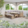 Narożnik ogrodowy Stockholm z ławką w kolorze naturalnym to elegancki i funkcjonalny zestaw wypoczynkowy, który doskonale sprawdzi się w ogrodzie, na tarasie lub większym balkonie. Wykonany z trwałego technorattanu, odpornego na warunki atmosferyczne i promieniowanie UV, zapewnia długotrwałe użytkowanie bez potrzeby intensywnej konserwacji.