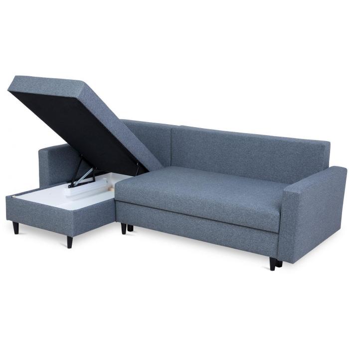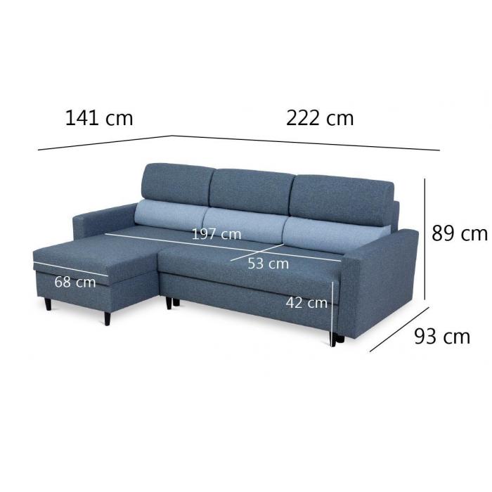 Sposób rozkładania DL to szybki i prosty sposób - wystarczy podnieść siedzisko do góry i przesunąć do przodu, a w miejsce siedziska kładziemy oparcie. Po rozłożeniu powierzchnia spania wynosi 124x197cm. Kanapa posiada pojemnik na pościel, w którym zmieścimy kołdrę i poduszkę zapewniając porządek w pomieszczeniu.