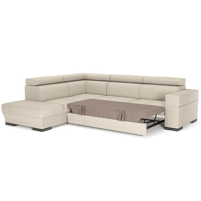 Narożnik Parys z funkcją spania został pokryty tkaniną. Prostotę i łatwość użytkowania gwarantuje system rozkładania typu delfin. Jest to szybki, prosty i wygodny sposób rozkładania. Jest jednym z najbardziej popularnych systemów rozkładania, który jest wykorzystywany w narożnikach. Po rozłożeniu to okazjonalne miejsce do spania o wymiarach 202x122 cm. Mebel posiada pojemnik, do którego można schować pościel, dodatkowe koce czy też poduszki. W siedzisku zastosowano sprężynę bonell i falistą, która dostosowuje się do ciężaru i kształtu ciała, zapewniając tym samym wysoki komfort siedzenia. Ten niepowtarzalny mebel wypoczynkowy stworzono z myślą o funkcjonalności i eleganckim wyglądzie. Narożnik dostępny w wersji prawostronnej i lewostronnej.