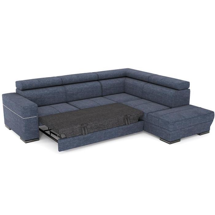 Narożnik Parys z funkcją spania został pokryty tkaniną. Prostotę i łatwość użytkowania gwarantuje system rozkładania typu delfin. Jest to szybki, prosty i wygodny sposób rozkładania. Jest jednym z najbardziej popularnych systemów rozkładania, który jest wykorzystywany w narożnikach. Po rozłożeniu to okazjonalne miejsce do spania o wymiarach 202x122 cm. Mebel posiada pojemnik, do którego można schować pościel, dodatkowe koce czy też poduszki. W siedzisku zastosowano sprężynę bonell i falistą, która dostosowuje się do ciężaru i kształtu ciała, zapewniając tym samym wysoki komfort siedzenia. Ten niepowtarzalny mebel wypoczynkowy stworzono z myślą o funkcjonalności i eleganckim wyglądzie. Narożnik dostępny w wersji prawostronnej i lewostronnej.