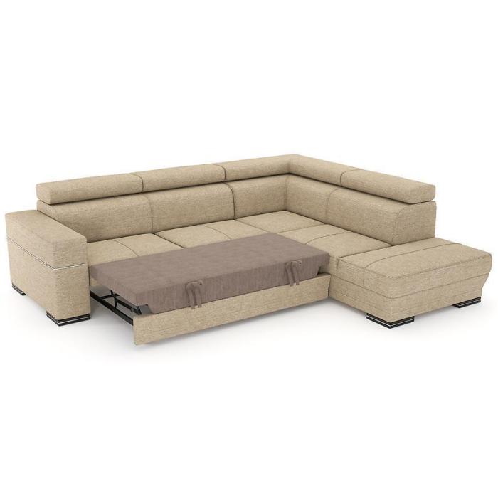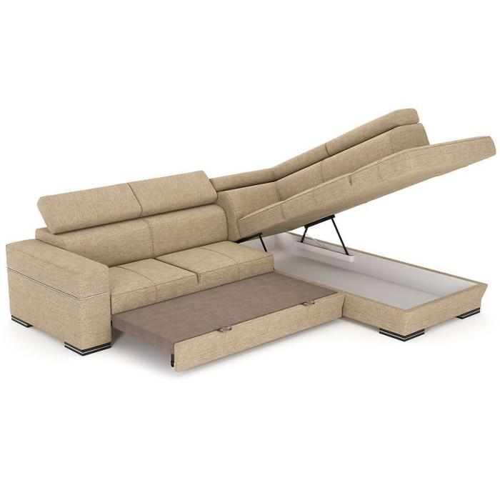 Narożnik Parys z funkcją spania został pokryty tkaniną. Prostotę i łatwość użytkowania gwarantuje system rozkładania typu delfin. Jest to szybki, prosty i wygodny sposób rozkładania. Jest jednym z najbardziej popularnych systemów rozkładania, który jest wykorzystywany w narożnikach. Po rozłożeniu to okazjonalne miejsce do spania o wymiarach 202x122 cm. Mebel posiada pojemnik, do którego można schować pościel, dodatkowe koce czy też poduszki. W siedzisku zastosowano sprężynę bonell i falistą, która dostosowuje się do ciężaru i kształtu ciała, zapewniając tym samym wysoki komfort siedzenia. Ten niepowtarzalny mebel wypoczynkowy stworzono z myślą o funkcjonalności i eleganckim wyglądzie. Narożnik dostępny w wersji prawostronnej i lewostronnej.