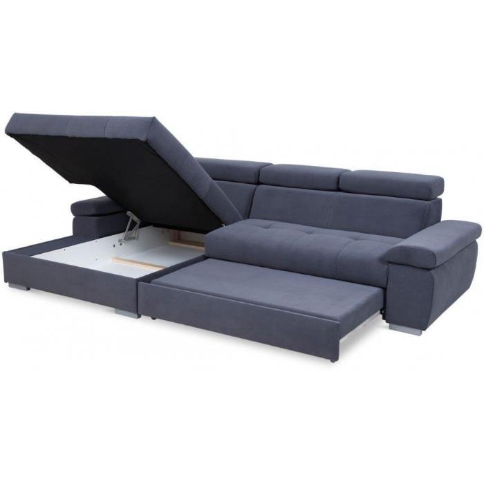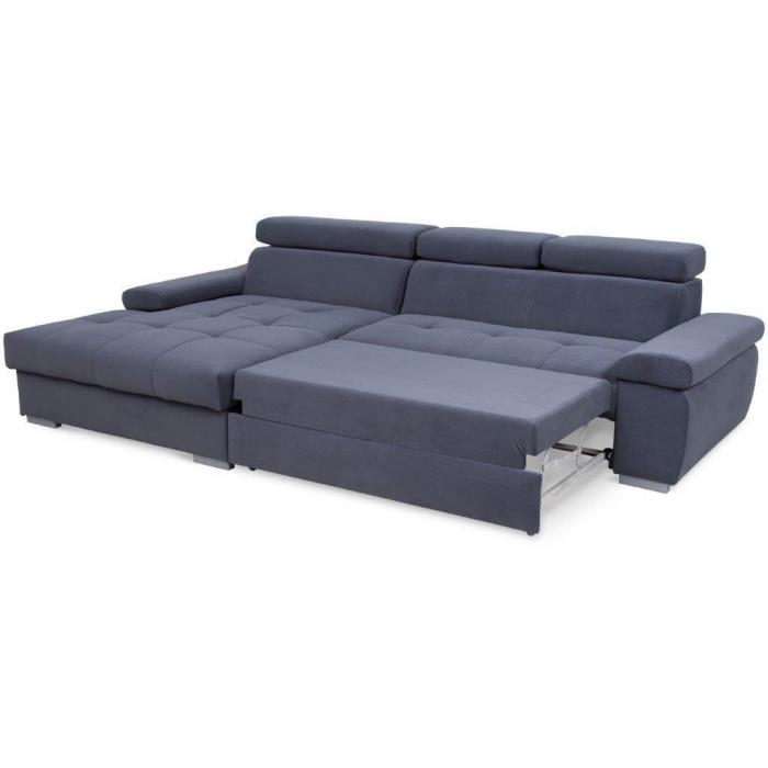 Sofa narożna Pedro to elegancja, wygoda i funkcjonalność. Duży narożnik rozkładany to mebel idealny dla rodzin, które cenią sobie wspólny wypoczynek na sofie. Pedro to nowoczesny narożnik posiadający regulowane zagłówki, zapewniając dodatkowy komfort wypoczynku podczas oglądania telewizji. Narożnik z funkcją spania wyposażony w sprężyny faliste oraz wygodne oparcie zadowoli nawet najbardziej wymagających miłośników wielogodzinnych drzemek. Kanapa narożna z pojemnikiem to idealne rozwiązanie, które świetnie sprawdzi się w każdym domu. Narożnik tapicerowany możesz ustawić w salonie lub innym pomieszczeniu. Meble wypoczynkowe wyposażone w funkcję spania to doskonały wybór na długie lata.