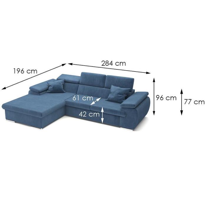 Sofa narożna Polo to najbardziej praktyczny mebel, który będzie pasował do salonu, ale znajdzie swoje miejsce również w innym pomieszczeniu. Nowoczesne narożniki rozkładane to doskonały wybór na długie lata. Funkcja spania to szczególnie ważne i świetne rozwiązanie, które zapewni miejsce snu, po rozłożeniu to okazjonalne miejsce do spania o wymiarach 124x210 cm. Polo posiada jeden pojemnik na pościel, a system rozkładania typu delfin to szybki, prosty i wygodny sposób rozkładania.