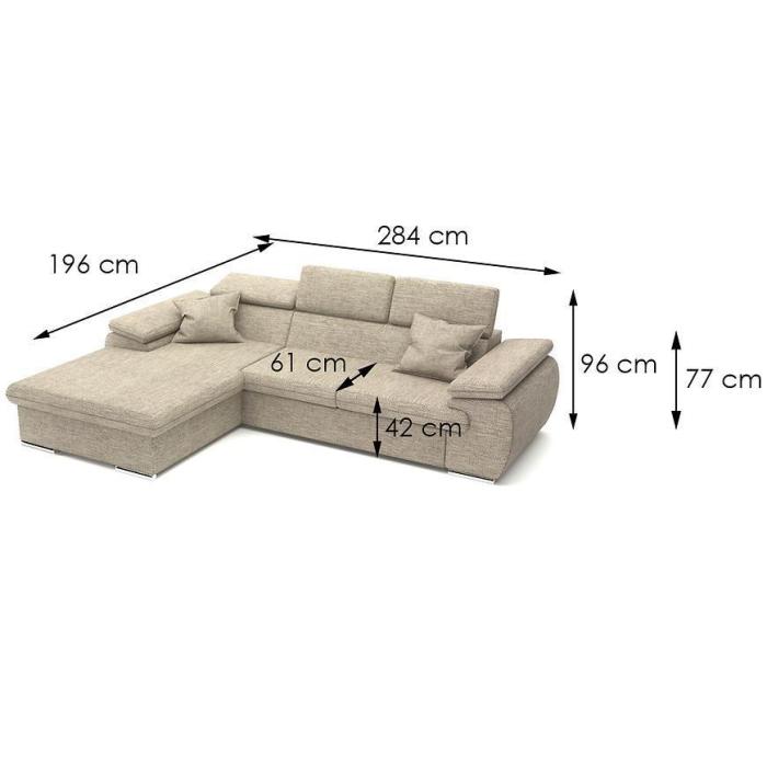 Sofa narożna Polo to najbardziej praktyczny mebel, który będzie pasował do salonu, ale znajdzie swoje miejsce również w innym pomieszczeniu. Nowoczesne narożniki rozkładane to doskonały wybór na długie lata. Funkcja spania to szczególnie ważne i świetne rozwiązanie, które zapewni miejsce snu, po rozłożeniu to okazjonalne miejsce do spania o wymiarach 124x210 cm. Polo posiada jeden pojemnik na pościel, a system rozkładania typu delfin to szybki, prosty i wygodny sposób rozkładania.