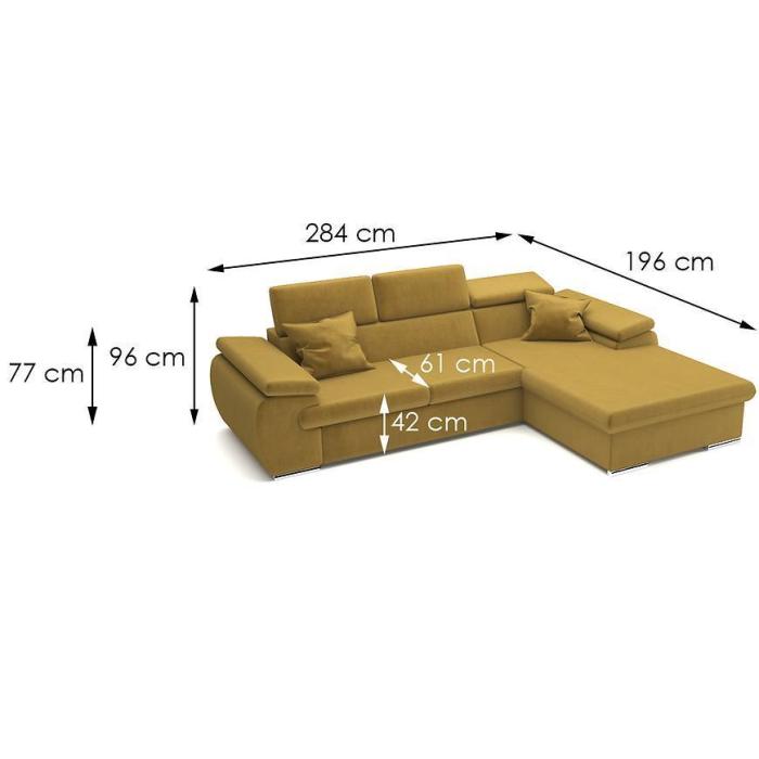 Sofa narożna Polo to najbardziej praktyczny mebel, który będzie pasował do salonu, ale znajdzie swoje miejsce również w innym pomieszczeniu. Nowoczesne narożniki rozkładane to doskonały wybór na długie lata. Funkcja spania to szczególnie ważne i świetne rozwiązanie, które zapewni miejsce snu po, rozłożeniu to okazjonalne miejsce do spania o wymiarach 124x210 cm. Polo posiada jeden pojemnik na pościel, a system rozkładania typu delfin to szybki, prosty i wygodny sposób rozkładania.
