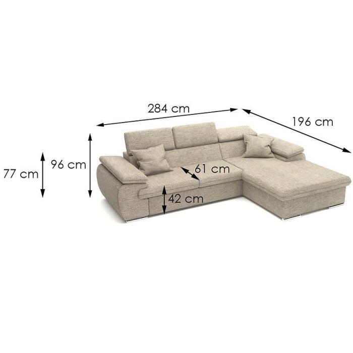 Sofa narożna Polo to najbardziej praktyczny mebel, który będzie pasował do salonu, ale znajdzie swoje miejsce również w innym pomieszczeniu. Nowoczesne narożniki rozkładane to doskonały wybór na długie lata. Funkcja spania to szczególnie ważne i świetne rozwiązanie, które zapewni miejsce snu, po rozłożeniu to okazjonalne miejsce do spania o wymiarach 124x210 cm. Polo posiada jeden pojemnik na pościel, a system rozkładania typu delfin to szybki, prosty i wygodny sposób rozkładania.