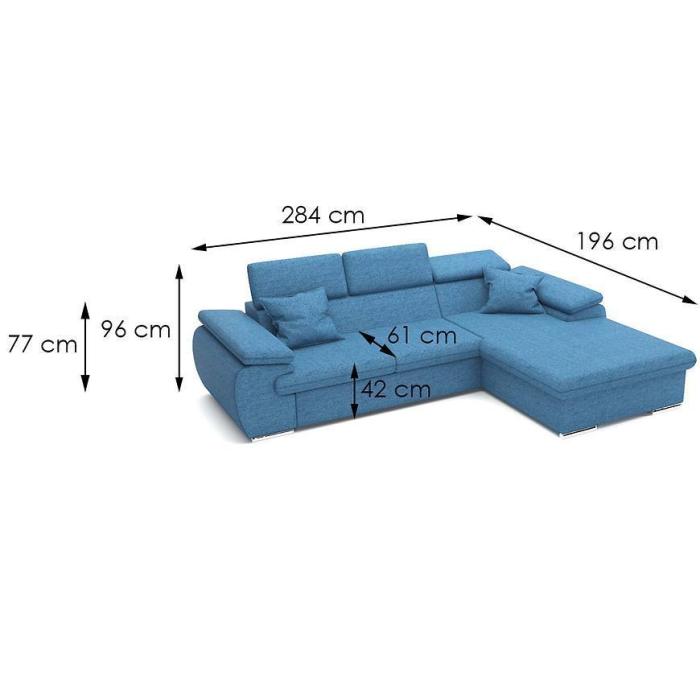 Sofa narożna Polo to najbardziej praktyczny mebel, który będzie pasował do salonu, ale znajdzie swoje miejsce również w innym pomieszczeniu. Nowoczesne narożniki rozkładane to doskonały wybór na długie lata. Funkcja spania to szczególnie ważne i świetne rozwiązanie, które zapewni miejsce snu, po rozłożeniu to okazjonalne miejsce do spania o wymiarach 124x210 cm. Polo posiada jeden pojemnik na pościel, a system rozkładania typu delfin to szybki, prosty i wygodny sposób rozkładania.