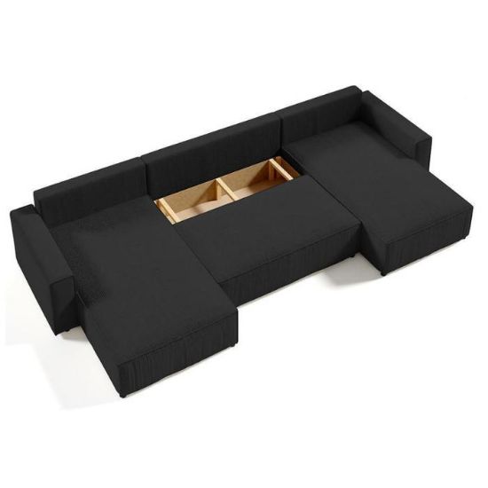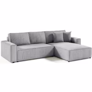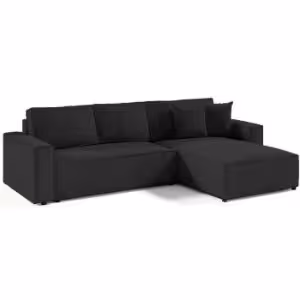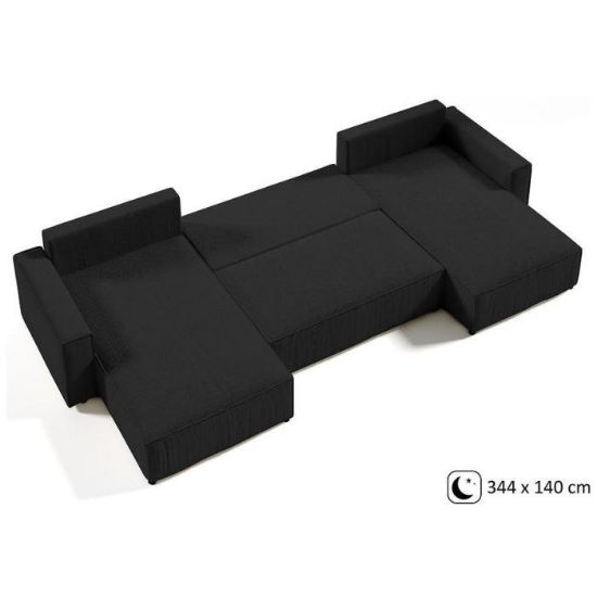 Narożnik Posso z funkcją spania został pokryty tkaniną. Prostotę i łatwość użytkowania gwarantuje system rozkładania typu DL. Jest to szybki, prosty i wygodny sposób rozkładania. Jest jednym z najbardziej popularnych systemów rozkładania, który jest wykorzystywany w narożnikach. Po rozłożeniu to okazjonalne miejsce do spania o wymiarach 140x344 cm. Mebel posiada pojemnik, do którego można schować pościel, dodatkowe koce czy też poduszki. W siedzisku zastosowano sprężynę falistą, która dostosowuje się do ciężaru i kształtu ciała, zapewniając tym samym wysoki komfort siedzenia. Ten niepowtarzalny mebel wypoczynkowy stworzono z myślą o funkcjonalności i eleganckim wyglądzie. Narożnik dostępny w wersji uniwersalnej.