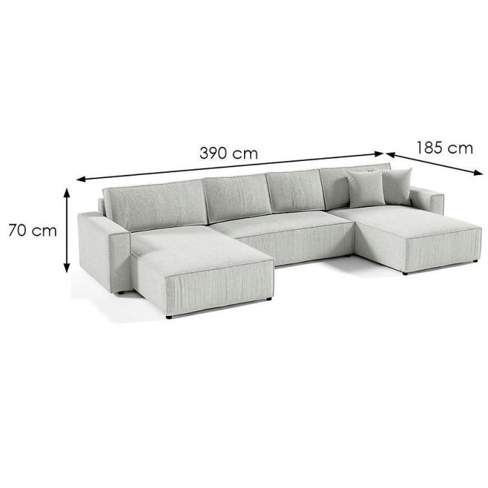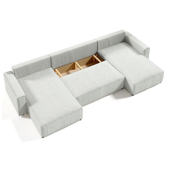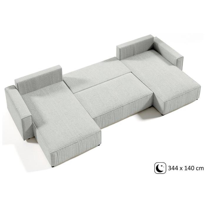 Narożnik Posso z funkcją spania został pokryty tkaniną. Prostotę i łatwość użytkowania gwarantuje system rozkładania typu DL. Jest to szybki, prosty i wygodny sposób rozkładania. Jest jednym z najbardziej popularnych systemów rozkładania, który jest wykorzystywany w narożnikach. Po rozłożeniu powierzchnia spania wynosi 140x344 cm. Mebel posiada pojemnik, do którego można schować pościel, dodatkowe koce czy też poduszki. W siedzisku zastosowano sprężynę falistą, która dostosowuje się do ciężaru i kształtu ciała, zapewniając tym samym wysoki komfort siedzenia. Ten niepowtarzalny mebel wypoczynkowy stworzono z myślą o funkcjonalności i eleganckim wyglądzie. Narożnik dostępny w wersji uniwersalnej.