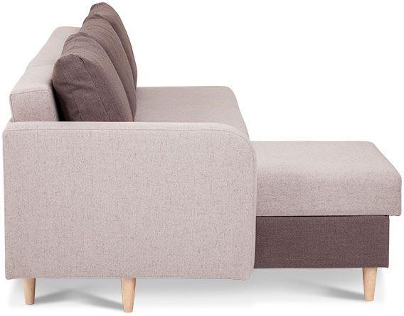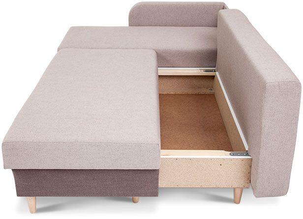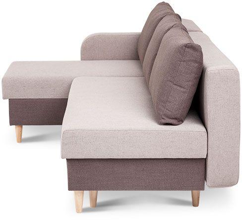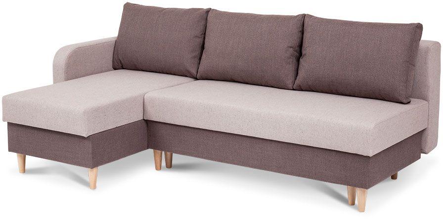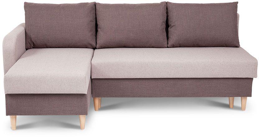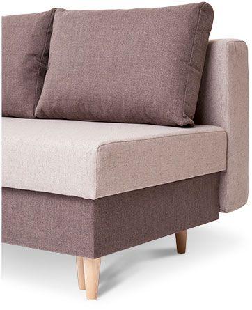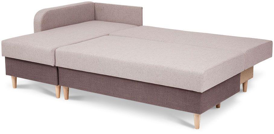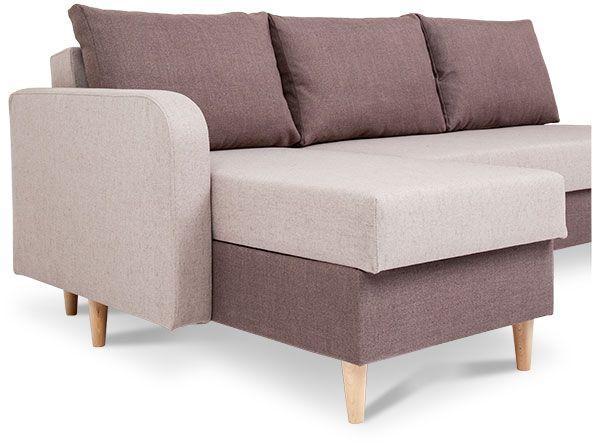 Narożnik Prima prawy w wersji prawej jest wyznacznikiem nietuzinkowego designu, który nada niepowtarzalnego charakteru Twoim pomieszczeniom. Doskonale sprawdzi się w salonie czy pokoju gościnnym. Zastosowane w siedzisku sprężyny typu bonell wykazują dużą elastyczność i dostosowują się do użytkowników o zróżnicowanej masie ciała. Niezaprzeczalny walor stylistyczny stanowi wyprofilowane siedzisko w dwóch odcieniach. Kompozycja beżowej i brązowej kolorystyki w połączeniu z drewnianymi nóżkami jest wyrazem niebanalnej estetyki. Wizualne walory pokrywają się z gwarancją komfortowego użytkowania. Szybki i prosty sposób rozkładania kanapy narożnikowej DL jest odpowiedzią na potrzeby naszych Klientów. Dodatkowym atutem są dwa pojemniki na pościel pokaźnych rozmiarów, które umożliwiają zachowanie ładu w pomieszczeniu. Prawy narożnik Prima to połączenie walorów wizualnych z gwarancją funkcjonalności.