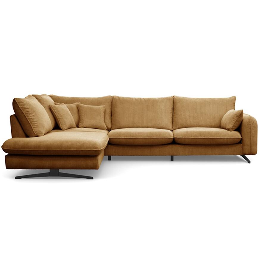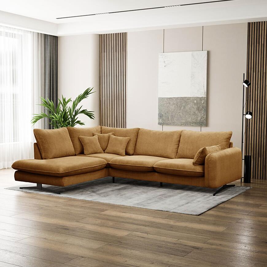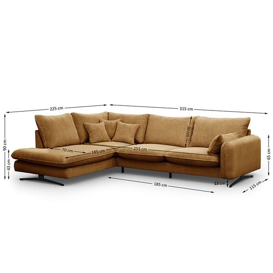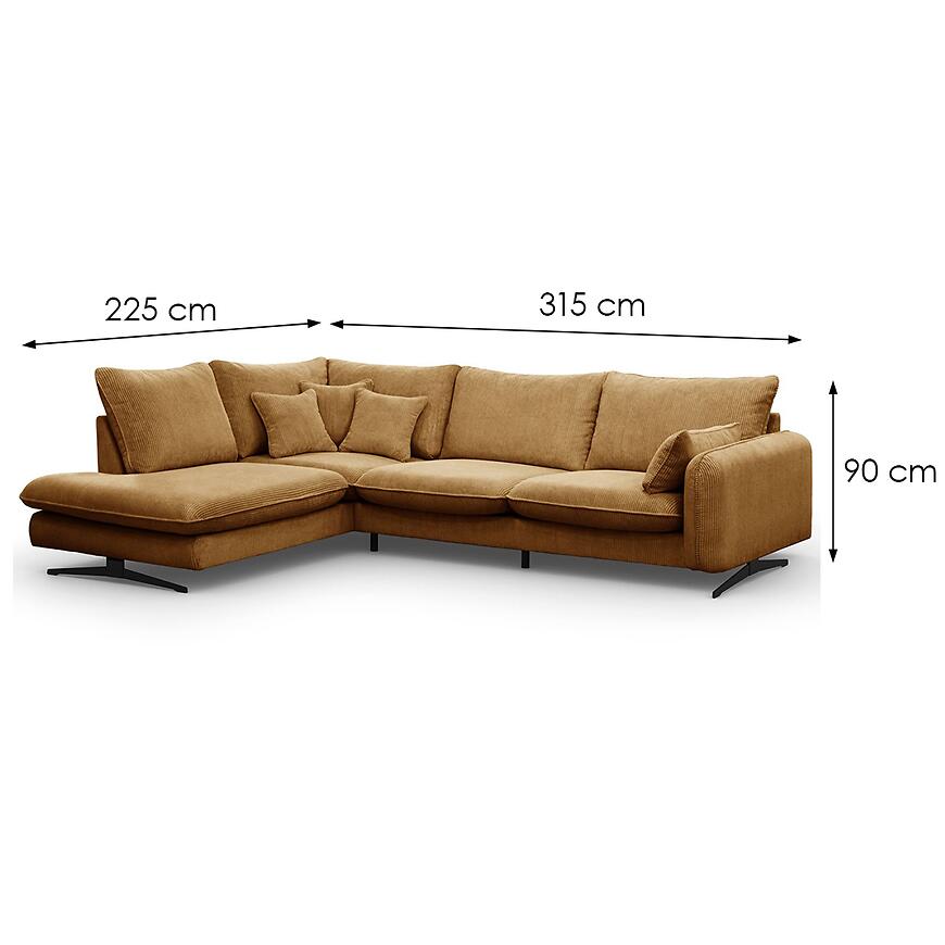 Narożnik Prince L lewostronny w kolorze rudym to propozycja dla osób, które poszukują dużego narożnika do salonu, łączącego wygodę codziennego użytkowania z estetyką dopasowaną do nowoczesnych i klasycznych wnętrz. Konstrukcja w kształcie litery L oraz lewa orientacja sprawiają, że mebel doskonale porządkuje przestrzeń wypoczynkową, oferując dużo miejsca do siedzenia dla domowników i gości. Szerokość 315 cm oraz głębokość 225 cm czynią z tego modelu narożnik duży, przeznaczony do przestronnych pomieszczeń, w których liczy się zarówno komfort, jak i wyrazisty wygląd strefy relaksu. Wysokość całkowita 90 cm pozwala na wygodne oparcie pleców i stabilne podparcie podczas dłuższego odpoczynku.
