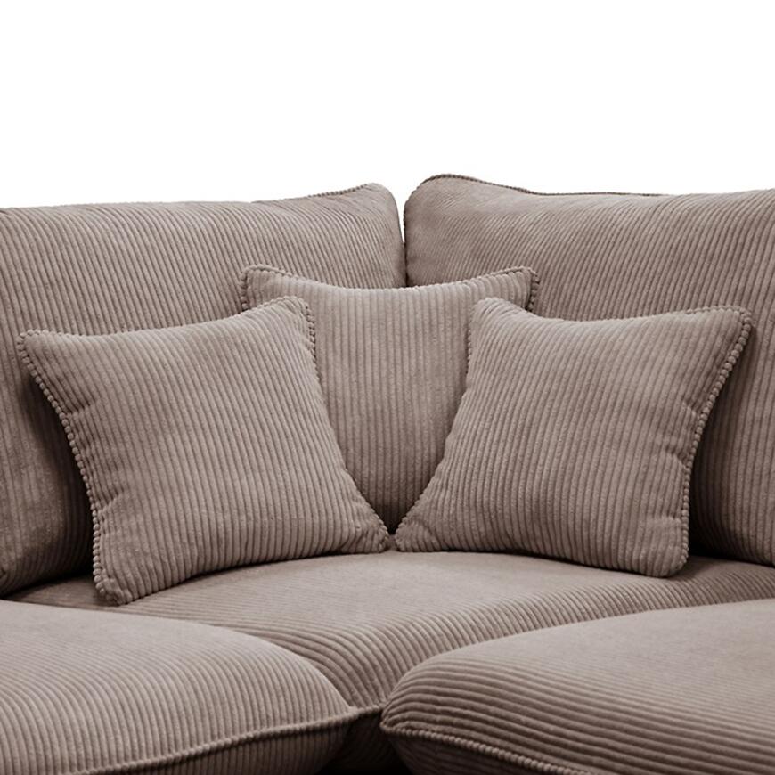 Narożnik nie posiada regulowanych zagłówków, podłokietników ani oparcia, co podkreśla jego prostą, nowoczesną formę i sprawia, że doskonale komponuje się z minimalistycznymi oraz eleganckimi aranżacjami wnętrz.