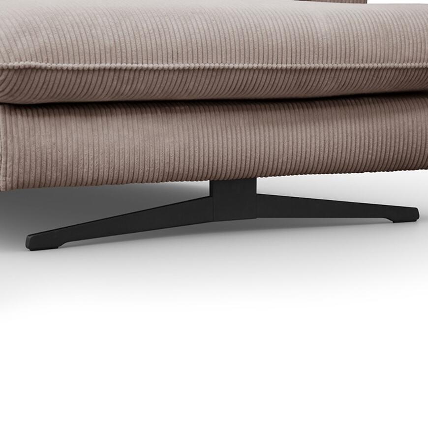 Czarne nogi narożnika Prince L nadają bryle nowoczesnego charakteru i subtelnie kontrastują z beżową tapicerką. Takie zestawienie kolorystyczne sprawia, że narożnik prezentuje się lekko i stylowo, a jednocześnie stabilnie osadza się w przestrzeni salonu.
