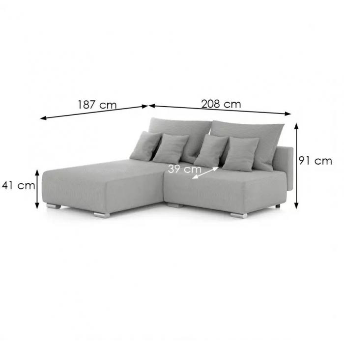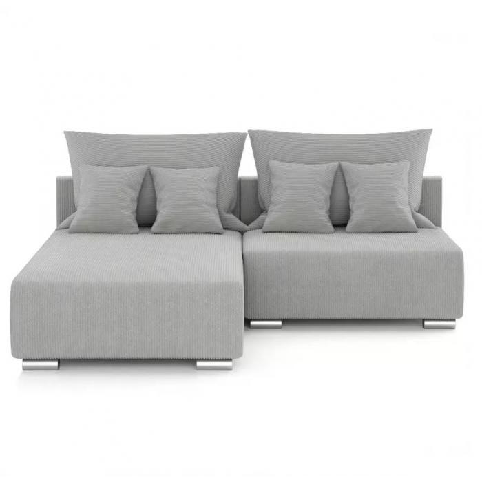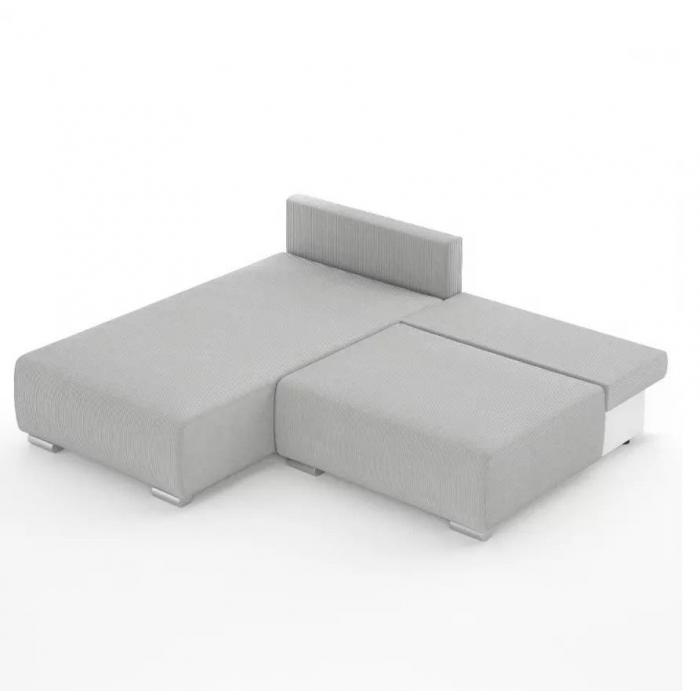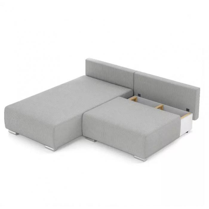 Narożnik Rich został pokryty tkaniną z funkcją spania typu DL- jest to szybki, prosty i wygodny sposób rozkładania. Jest jednym z najbardziej popularnych systemów rozkładania, który jest wykorzystywany w narożnikach. Polega on na lekkim podniesieniu i wysunięciu siedziska, a następnie należy złożyć oparcie. Pojemnik, do którego można schować pościel, dodatkowe koce czy też poduszki. Po rozłożeniu to okazjonalne miejsce do spania o wymiarach 150x203 cm. W siedzisku zastosowano sprężynę falistą, która dostosowuje się do ciężaru i kształtu ciała, zapewniając tym samym wysoki komfort siedzenia. Ten niepowtarzalny mebel wypoczynkowy stworzono z myślą o funkcjonalności i eleganckim wyglądzie. Narożnik dostępny w wersji prawostronnej i lewostronnej.