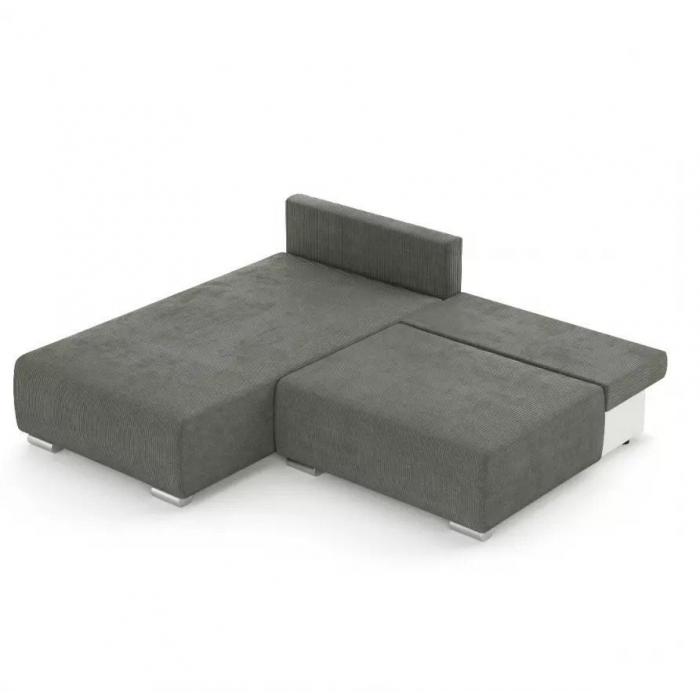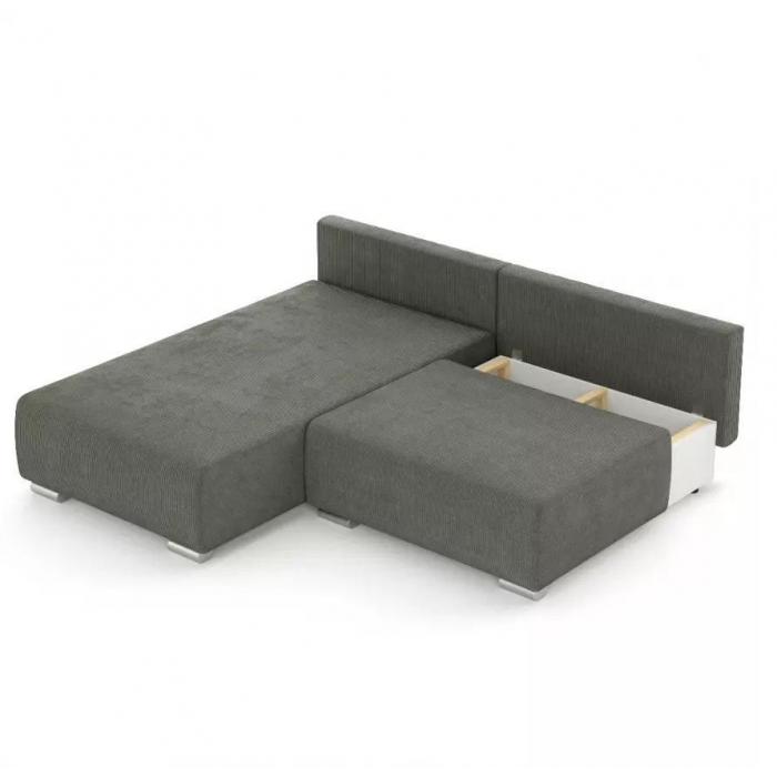 Narożnik Rich został pokryty tkaniną z funkcją spania typu DL- jest to szybki, prosty i wygodny sposób rozkładania. Jest jednym z najbardziej popularnych systemów rozkładania, który jest wykorzystywany w narożnikach. Polega on na lekkim podniesieniu i wysunięciu siedziska, a następnie należy złożyć oparcie. Pojemnik, do którego można schować pościel, dodatkowe koce czy też poduszki. Po rozłożeniu to okazjonalne miejsce do spania o wymiarach 150x203 cm. W siedzisku zastosowano sprężynę falistą, która dostosowuje się do ciężaru i kształtu ciała, zapewniając tym samym wysoki komfort siedzenia. Ten niepowtarzalny mebel wypoczynkowy stworzono z myślą o funkcjonalności i eleganckim wyglądzie. Narożnik dostępny w wersji prawostronnej i lewostronnej.